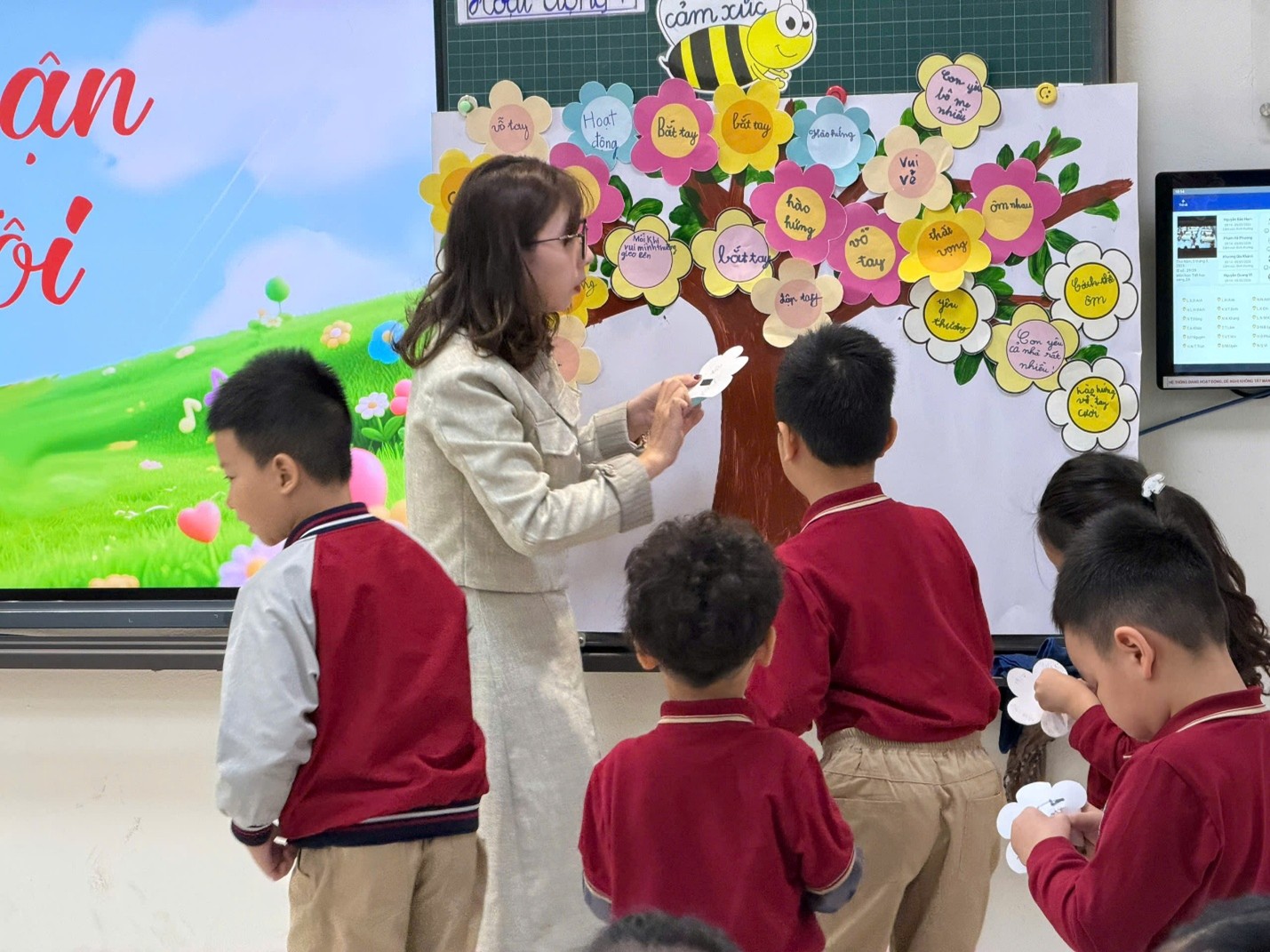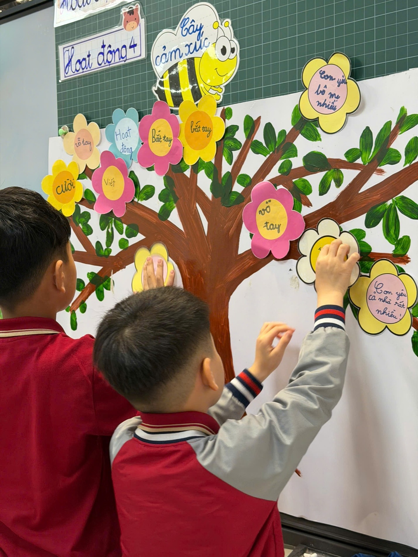 Đặc biệt, trò chơi “Cây Cảm Xúc” đã mang đến không khí thi đua sôi nổi. Các em được tham gia phân loại các “quả táo cảm xúc” vào hai nhóm: tích cực và tiêu cực. Hoạt động này không chỉ giúp củng cố kiến thức mà còn rèn luyện tinh thần hợp tác, làm việc nhóm và phản xạ nhanh nhạy cho học sinh.
