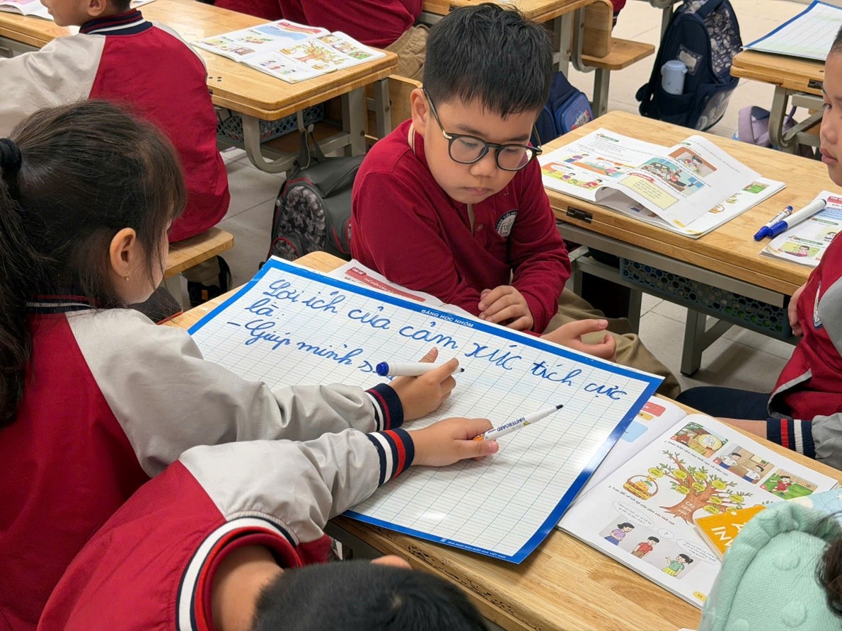 Trong hoạt động khám phá, học sinh được hóa thân thành những “thám tử cảm xúc”, quan sát video, tranh ảnh và thảo luận để nhận diện các trạng thái cảm xúc khác nhau như vui vẻ, hạnh phúc, tức giận, ghen tị… Thông qua đó, các em bước đầu biết phân biệt cảm xúc tích cực và tiêu cực dựa trên nét mặt, cử chỉ và lời nói.