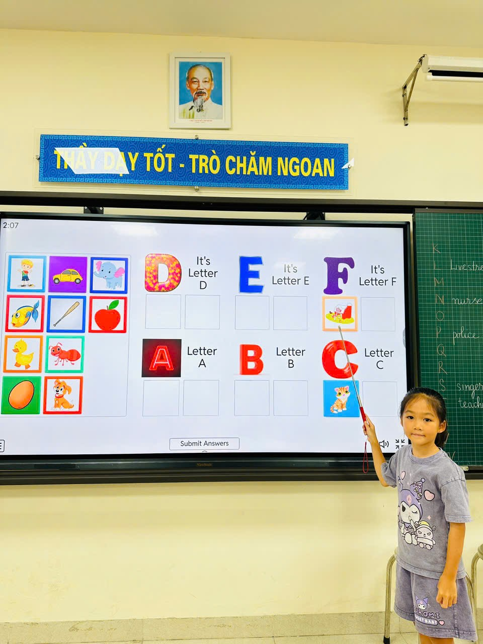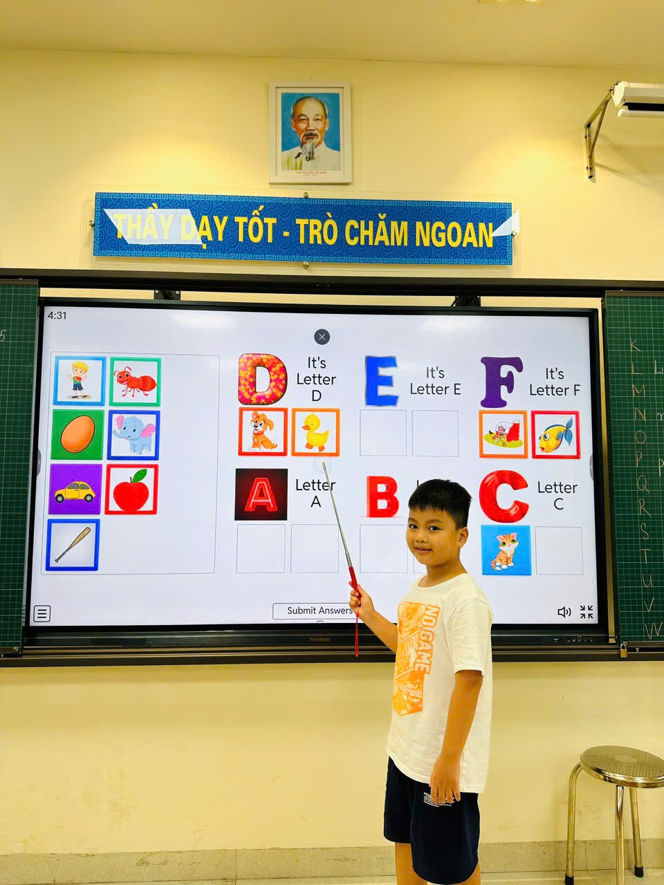 Các bạn lớp 2A vô cùng hào hứng khi tham gia giờ học tiếng Anh với bảng tương tác thông minh. Những bài học chữ cái, từ vựng trở nên sinh động và hấp dẫn hơn bao giờ hết. Không chỉ học kiến thức mới, các em còn được rèn luyện sự tự tin, mạnh dạn giao tiếp bằng ngoại ngữ.