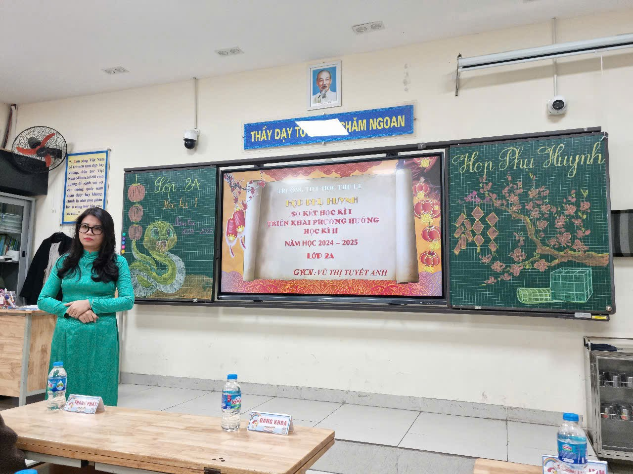 Tại lớp 2A của cô Vũ Thị Tuyết Anh, các phụ huynh đã có mặt từ rất sớm. Sau phần giới thiệu, cô giáo chủ nhiệm đã báo cáo về các mặt học tập, nề nếp, phong trào thi đua của lớp. Trong đó cô nhấn mạnh sự tiến bộ của học sinh lớp 2A trong học kỳ I. Nhiều học sinh đã có sự phát triển vượt bậc trong các môn học, đặc biệt là trong kỹ năng tính toán và kĩ năng viết sáng tạo. Cô cũng khuyến khích phụ huynh tiếp tục đồng hành cùng các em trong quá trình học tập tại nhà.