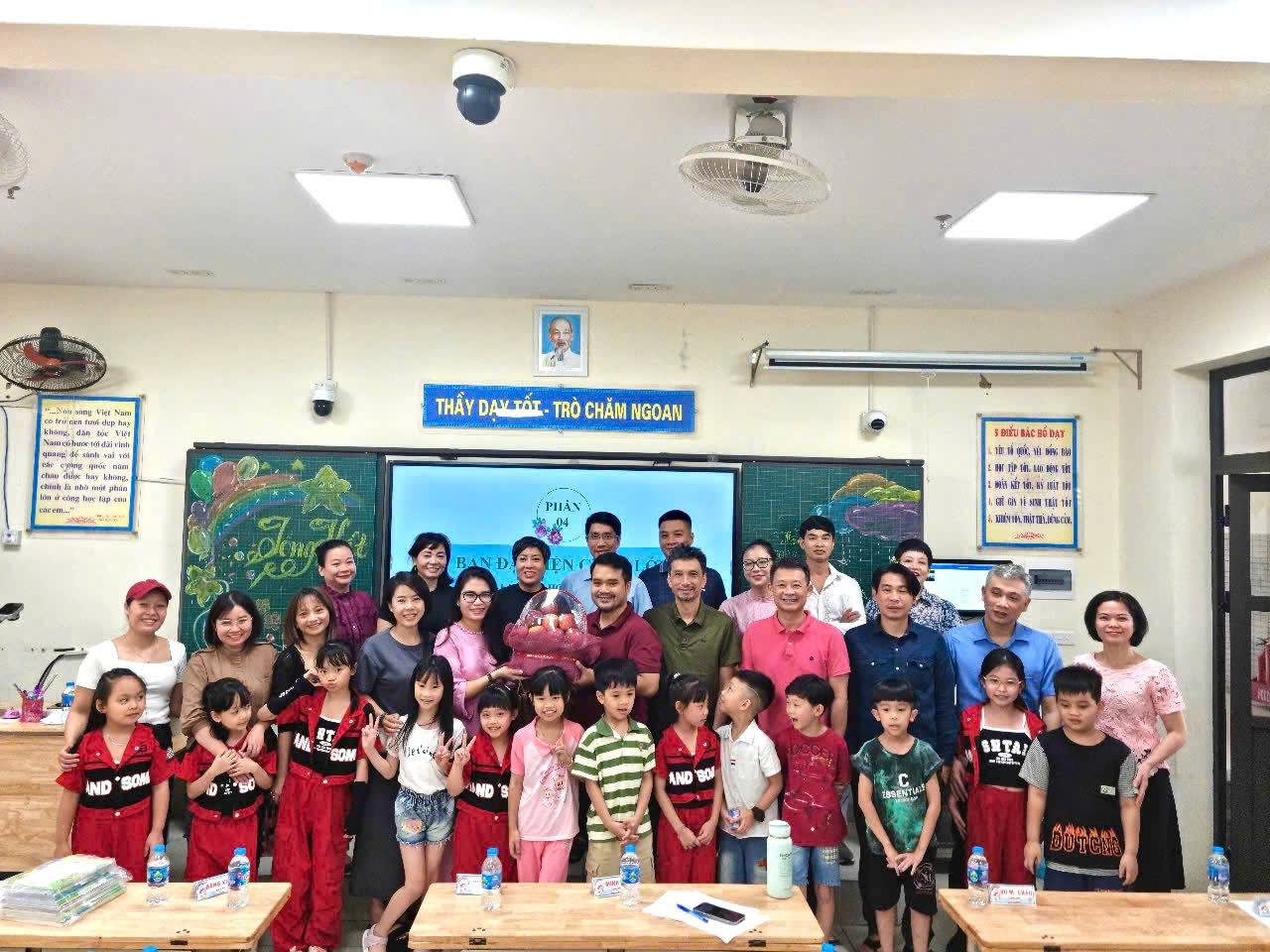 Lớp 2D – Cô Lê Thị Thu cùng học sinh đội văn nghệ khép lại buổi họp trong không khí hân hoan.