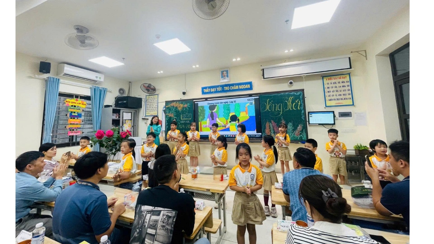 Lớp 2C – Cô Hoàng Thị Lương và cô Phương Ngọc Anh giao lưu văn nghệ cùng học sinh và phụ huynh trong ca khúc “Biết ơn thầy cô và ba mẹ”.
