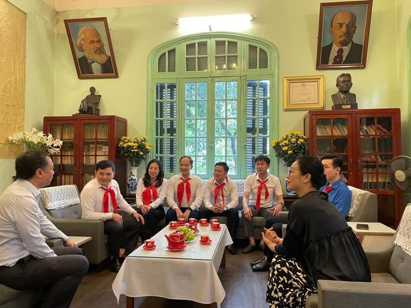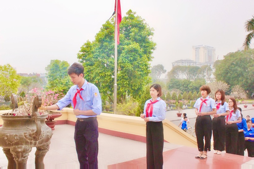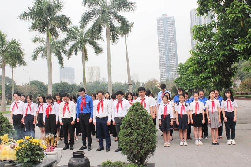 Các đồng chí giáo viên Tổng phụ trách Đội tiêu biểu của thành phố Hà Nội tham gia dâng hương tưởng niệm.