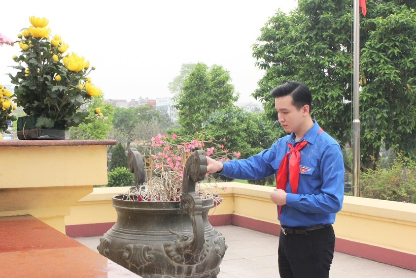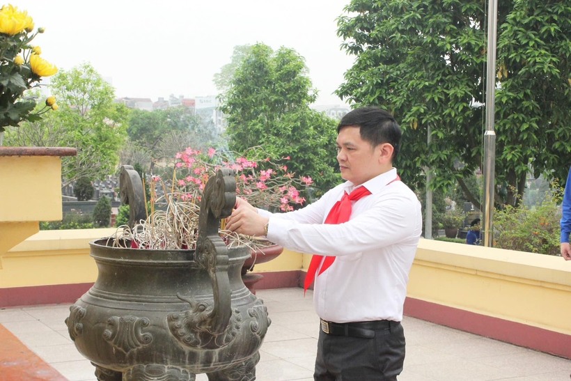Đồng chí Đào Đức Việt - Phó Bí thư Thành đoàn, Chủ tịch Hội đồng Đội thành phố Hà Nội dâng hương tưởng nhớ đồng chí cố Tổng Bí thư Lê Duẩn.
