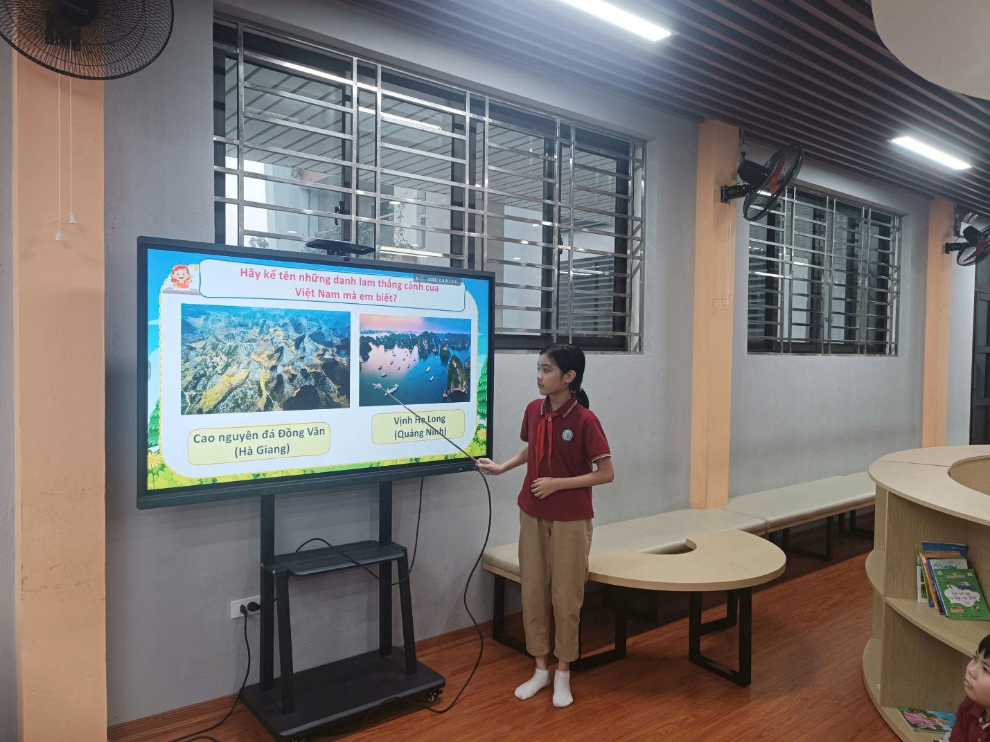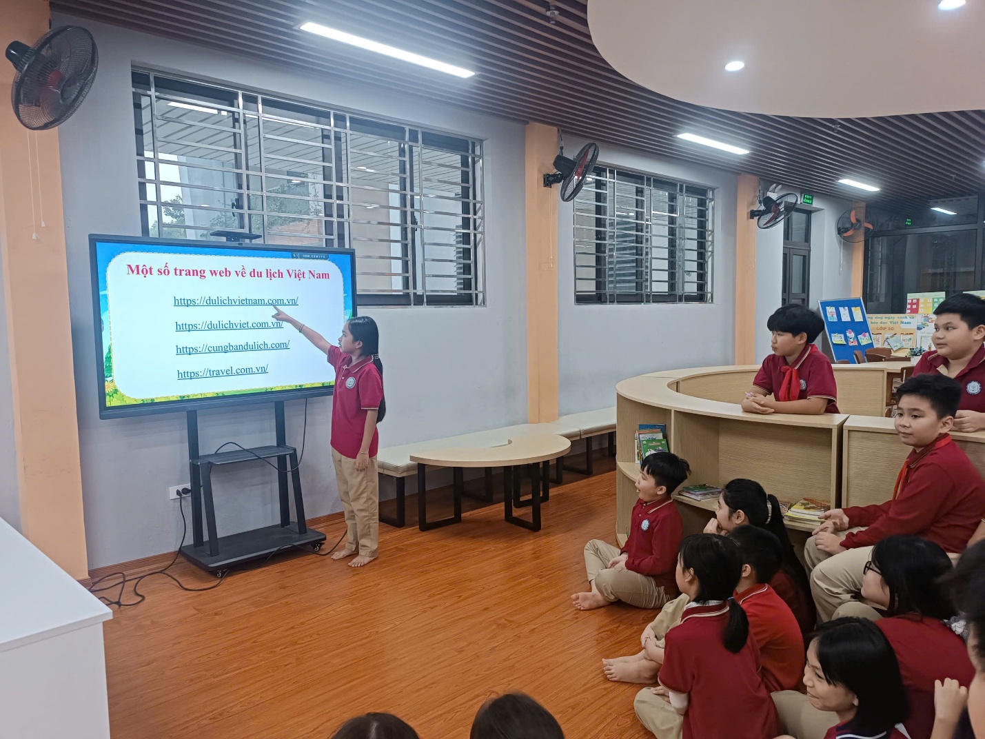 Chiều ngày 31/10, không gian thư viện Trường Tiểu học Thủ Lệ bỗng trở nên rộn ràng hơn bao giờ hết. Trong tiết Nói và nghe với chủ đề Cảnh đẹp thiên nhiên, các bạn nhỏ lớp 5B đã có một trải nghiệm thật đặc biệt – trở thành những hướng dẫn viên du lịch nhí vô cùng đáng yêu.