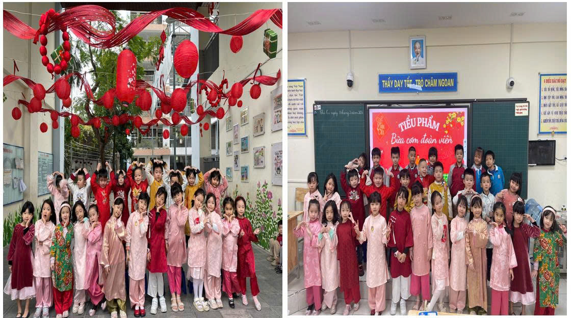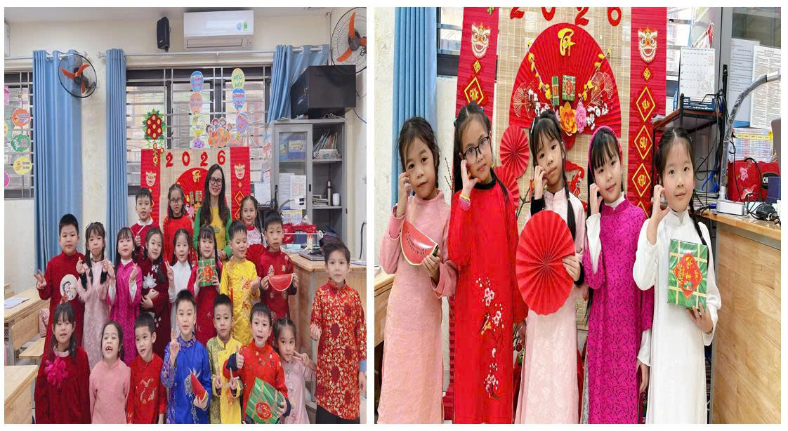 Xuân đã chạm ngõ. Những tia nắng ấm áp đầu năm khẽ hong khô cái lạnh cuối đông, mang theo hương vị Tết lan tỏa khắp sân trường, hành lang và từng lớp học của khối 1. Không khí rộn ràng, tươi vui hiện rõ trên từng gương mặt nhỏ xinh – nơi ánh mắt các con ánh lên niềm háo hức đón chào Tết Bính Ngọ.