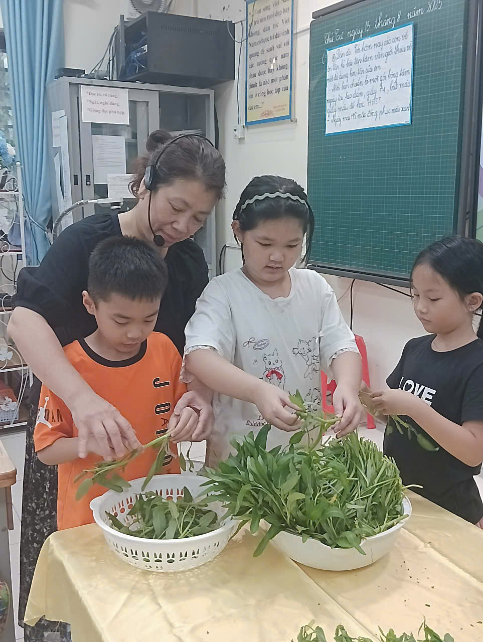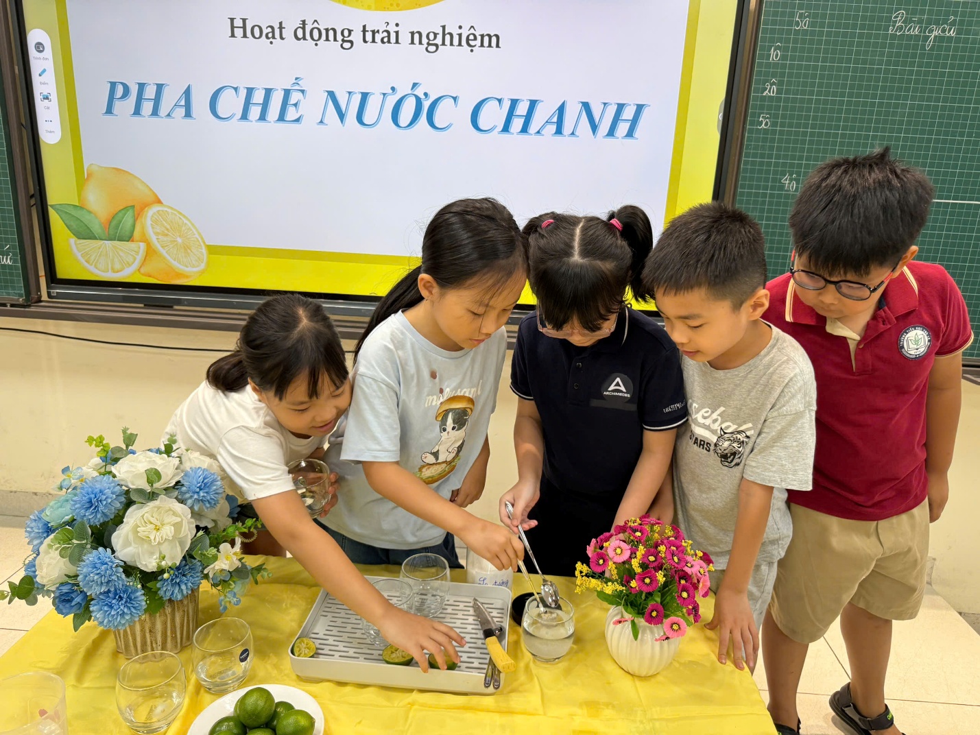 💡 Không chỉ rèn luyện sự khéo léo, cẩn thận và tinh thần hợp tác, tiết học còn giúp các em hiểu hơn về công việc nội trợ hằng ngày của bố mẹ, hình thành kĩ năng sống cần thiết cho bản thân. Không khí buổi học thật sôi nổi: các em hào hứng, chăm chú và thích thú với từng bước thực hành. Tiếng cười giòn tan vang lên khi mọi người cùng nhau thưởng thức ly nước chanh mát lạnh hay khoe phần rau mình đã nhặt thật sạch.