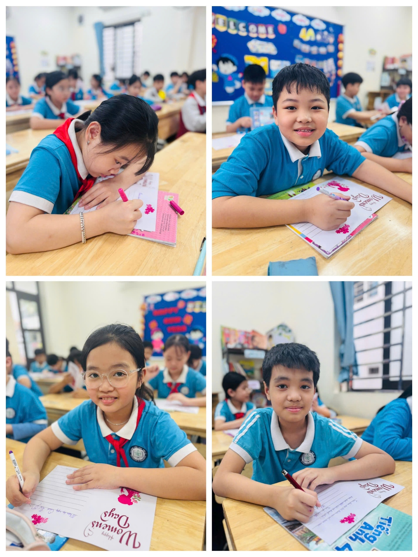 Thông qua hoạt động ý nghĩa này, học sinh lớp 4A không chỉ rèn luyện sự khéo léo, phát huy óc sáng tạo mà còn học cách bày tỏ tình cảm, sự biết ơn và trân trọng đối với những người phụ nữ đã luôn yêu thương, chăm sóc mình.