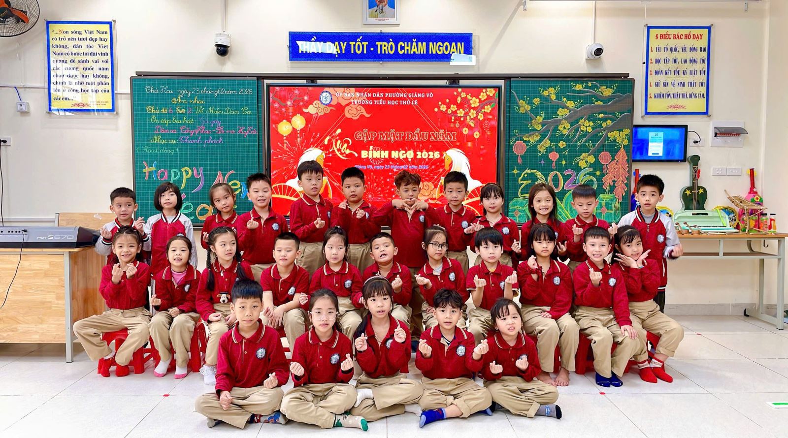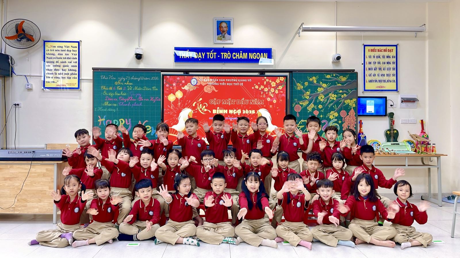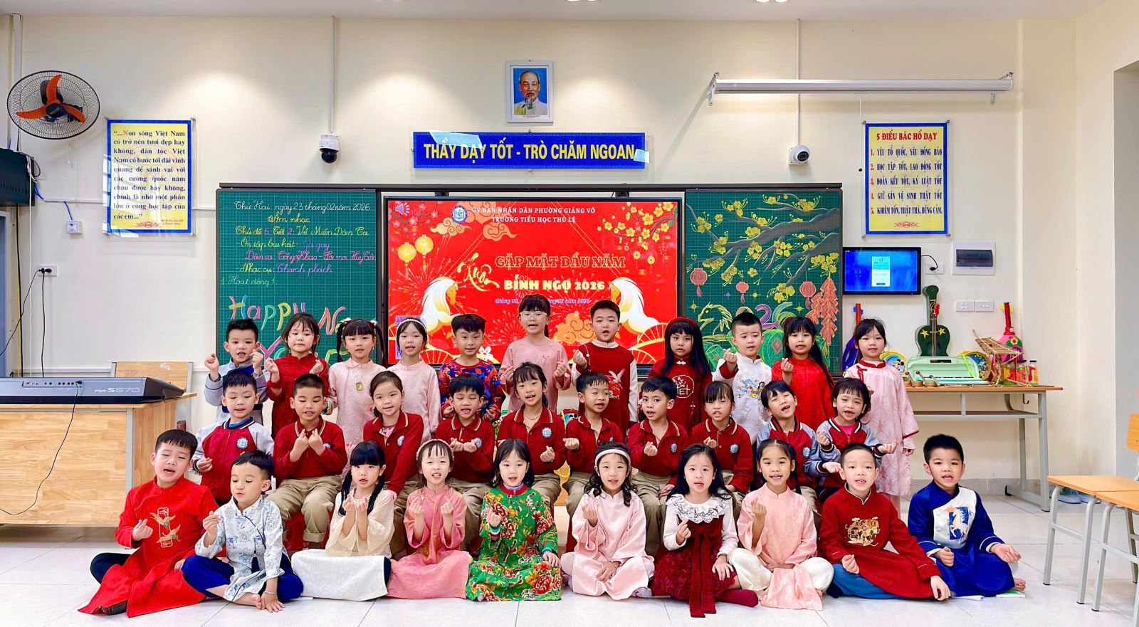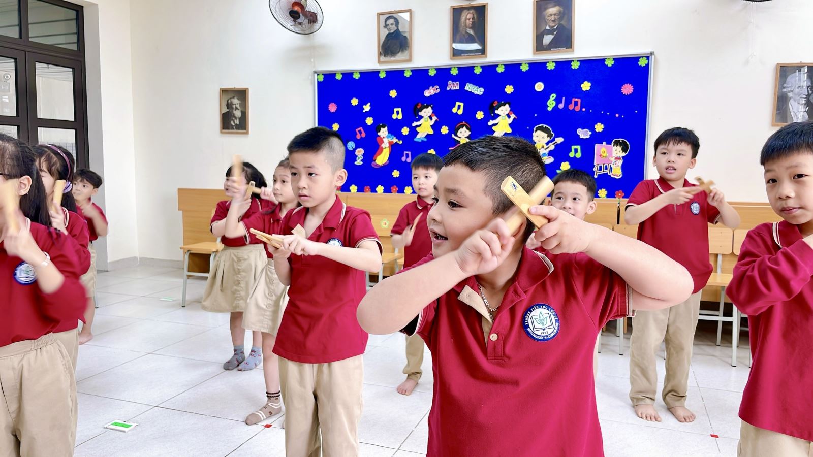 Thông qua hoạt động này, các em không chỉ rèn luyện khả năng cảm thụ âm nhạc, giữ nhịp và phối hợp vận động, mà còn phát triển sự tự tin, mạnh dạn thể hiện bản thân trước tập thể. Tiếng hát trong trẻo hòa cùng những nhịp gõ thanh phách rộn ràng đã mang lại một tiết học âm nhạc đầy ý nghĩa và niềm vui.