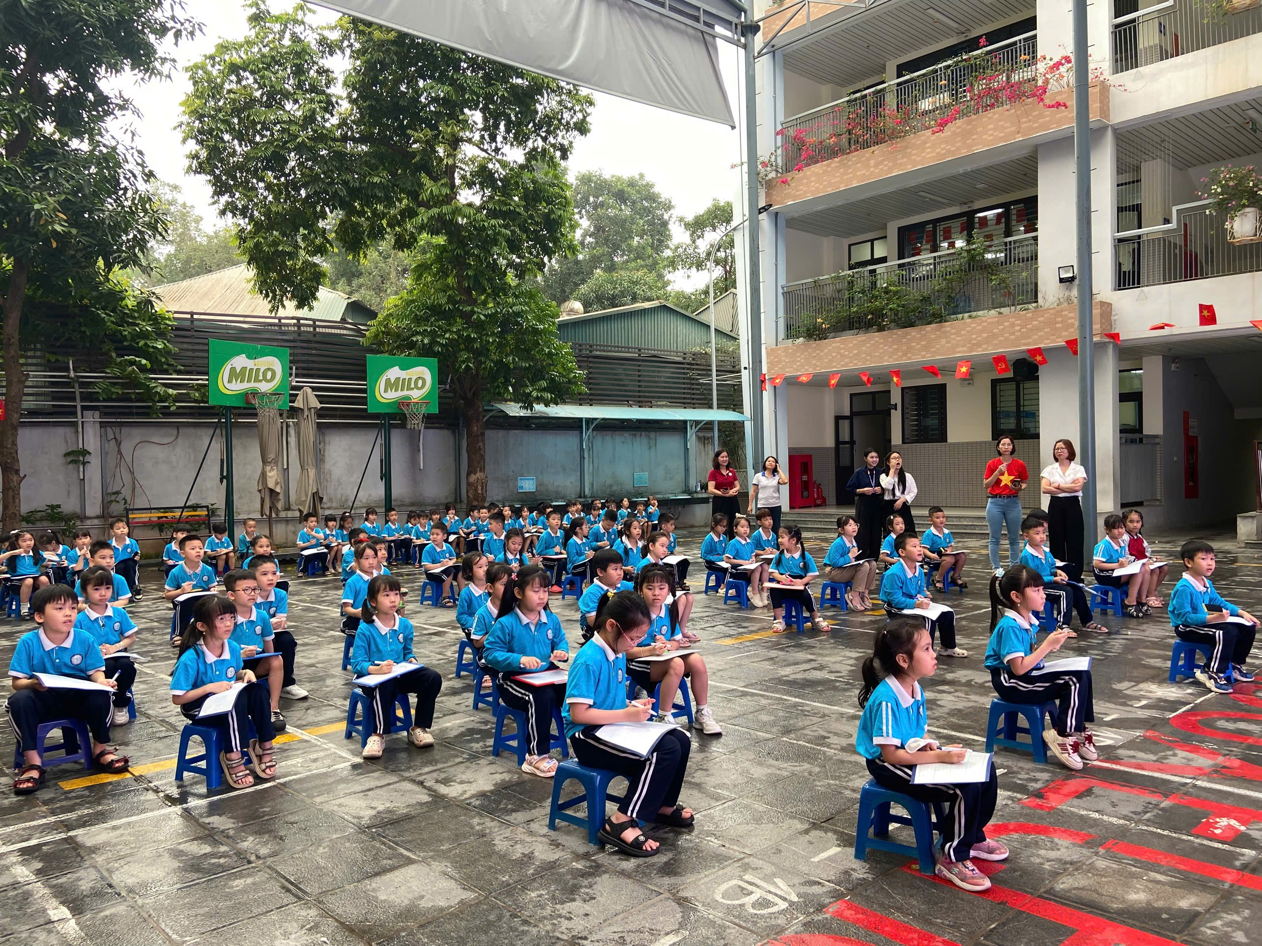 Sáng ngày 27/3 nhà trường cùng với Trung tâm Tiếng Anh Dream House tổ chức cho các con học sinh khối 1 sân chơi trí tuệ “ Rung chuông vàng”. Cuộc thi diễn ra trong không khí rộn ràng, sôi nổi và đầy hứng khởi, thu hút sự tham gia nhiệt tình của các em học sinh khối 1. Đây không chỉ là một hoạt động ngoại khóa bổ ích mà còn là cơ hội để các em thể hiện kiến thức, rèn luyện sự nhanh nhạy và bản lĩnh thông qua những câu hỏi thú vị, phù hợp với lứa tuổi. Ngay từ những phút đầu, chương trình đã nhận được sự cổ vũ nhiệt tình từ thầy cô và bạn bè, góp phần tạo nên một không gian học tập vui tươi, sôi động và giàu ý nghĩa.
