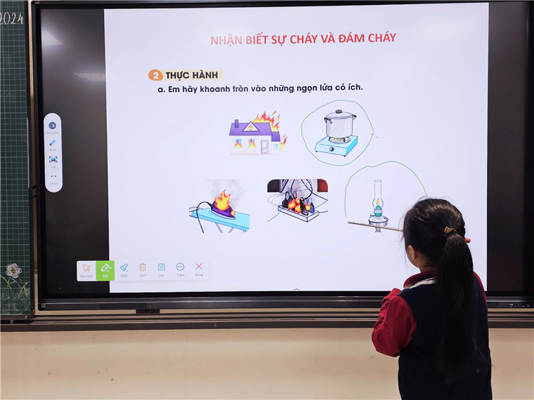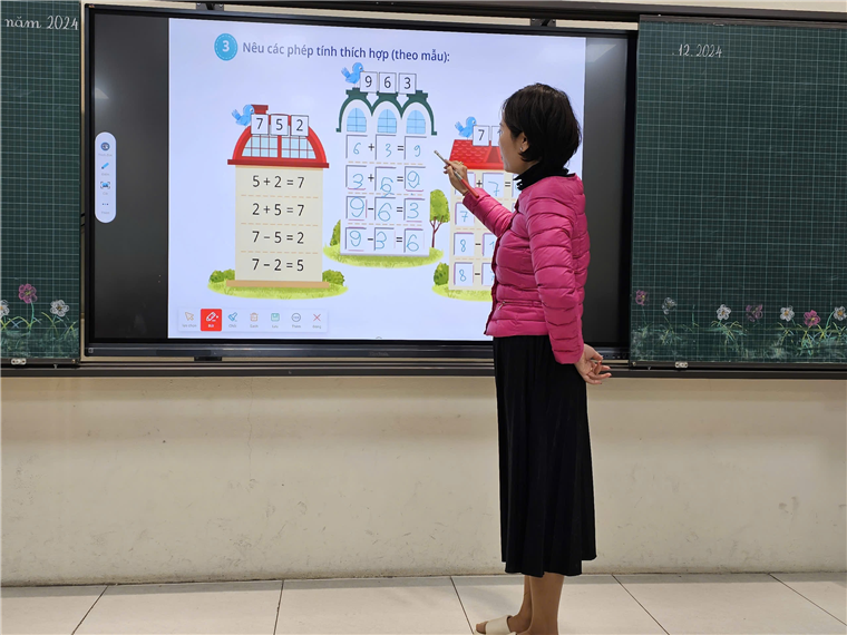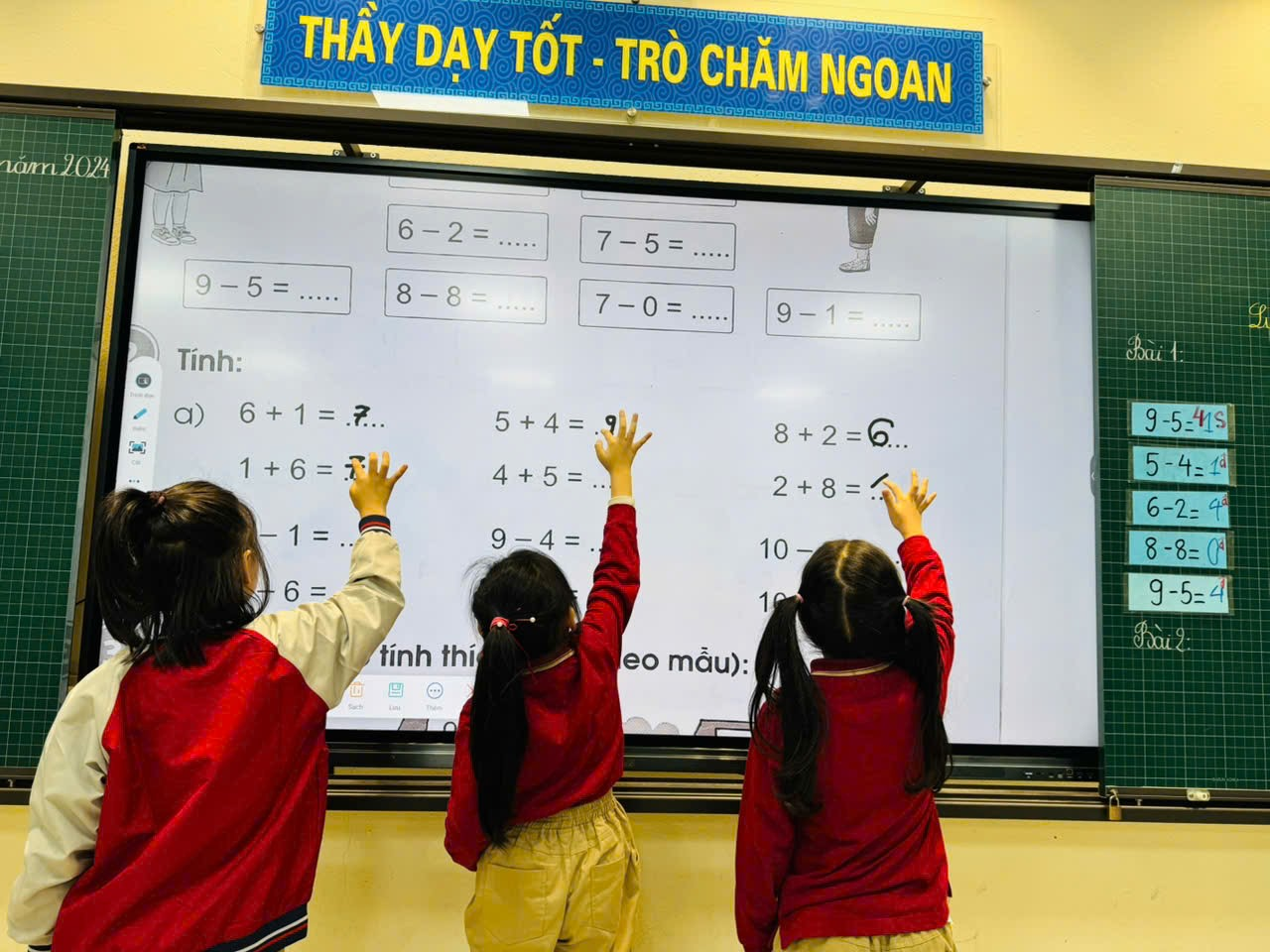 Việc khai thác, sử dụng tốt các thiết bị dạy học vào quá trình giảng dạy là khuyến khích được tư duy sáng tạo của cả giáo viên và học sinh, phát huy năng lực tự học, năng lực thực hành và là hành trang cho các con học sinh trờ thành những công dân số trong tương lai. Các con học sinh được trực tiếp, viết, làm bài, chữa bài khám phá kiến thức trên màn hình thông minh. Từ đó hình thành cho các con học sinh năng lực tự học, tự kiểm tra đánh giá. Qua đó các giờ học rất sôi nổi, không còn nhàm chán, thay vào đó bạn nào cũng muốn được lên bảng và tương tác với màn hình thông minh.