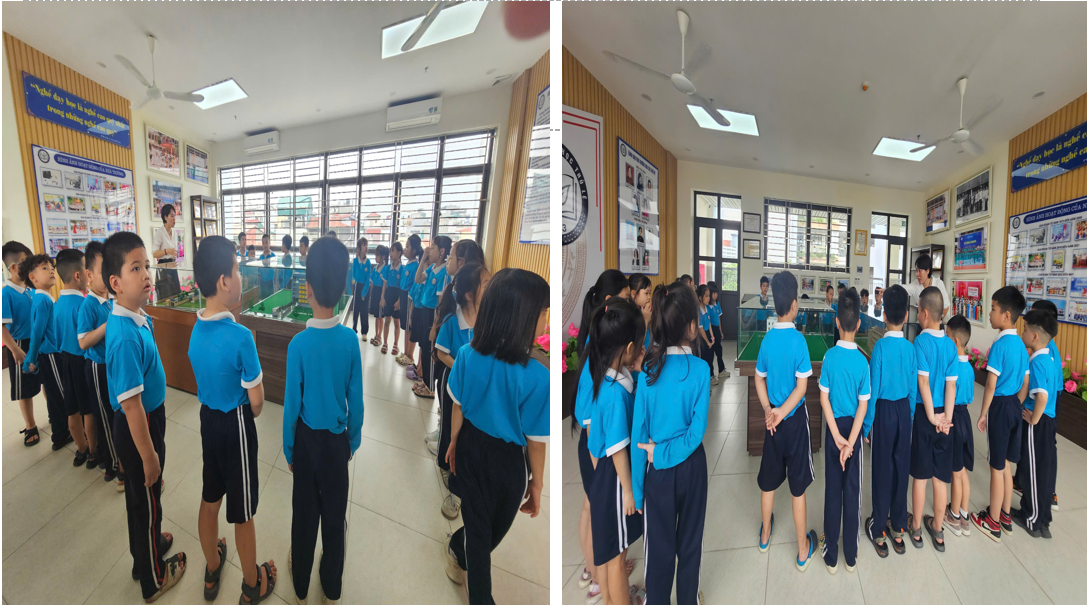 Sáng thứ Hai, ngày 26/5, trong không khí dịu dàng cuối tháng Năm, học sinh khối 1 Trường Tiểu học Thủ Lệ đã có một trải nghiệm vô cùng ý nghĩa khi cùng nhau tham quan Phòng Truyền thống của nhà trường – nơi lưu giữ những chặng đường vẻ vang suốt hơn 50 năm xây dựng và phát triển.