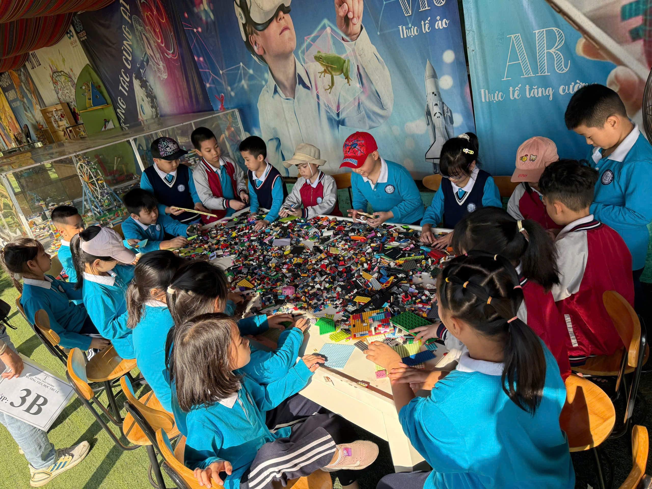 Học sinh khối 3 cũng được tiếp cận các hoạt động công nghệ và STEM như khám phá mô hình Lego, trải nghiệm không gian thực tế ảo VR, tham gia đấu trường Robotic và tìm hiểu thế giới động vật qua Flashcard 360 độ. Đây là những hoạt động giúp học sinh phát triển tư duy sáng tạo, khả năng quan sát và yêu thích khoa học - công nghệ.