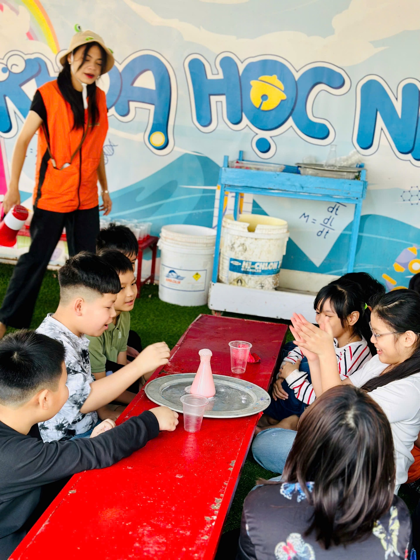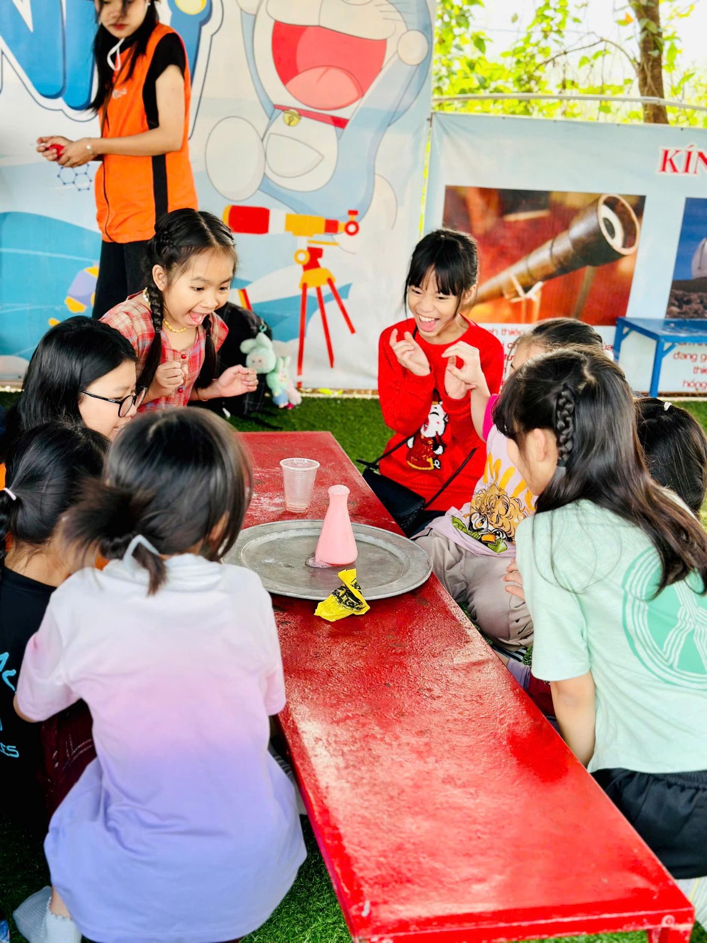 Các con rất thích thú khi tham gia thí nghiệm “Núi lửa phun trào”