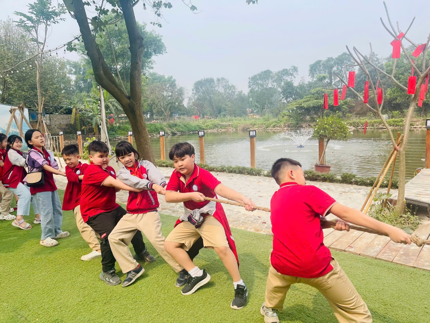 Cuộc thi kéo co vô cùng gay cấn giữa đội nam và đội nữ trong lớp