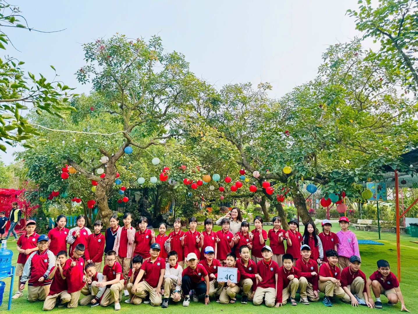 Tập thể lớp 4C chụp ảnh lưu niệm tại trang trại giáo dục Hải Đăng cùng cô giáo chủ nhiệm