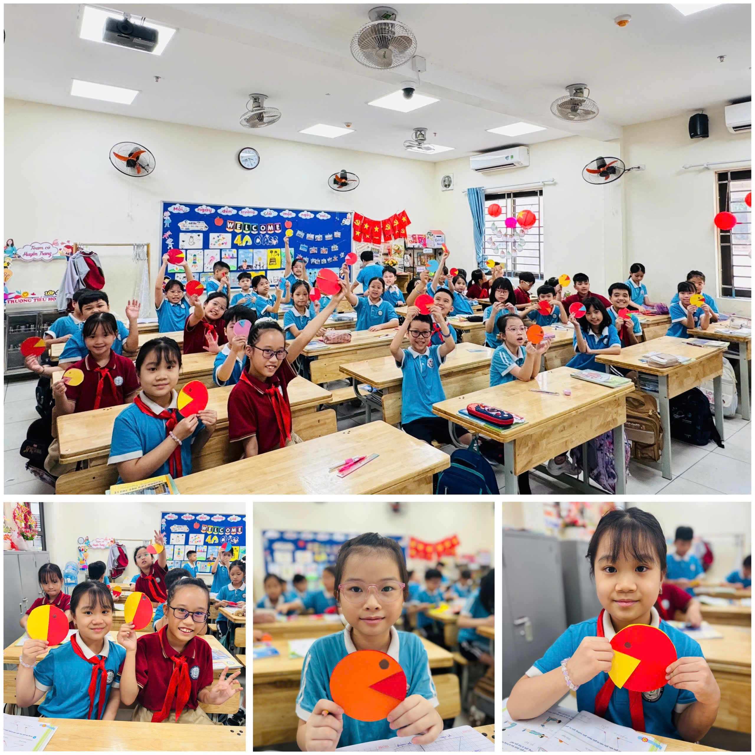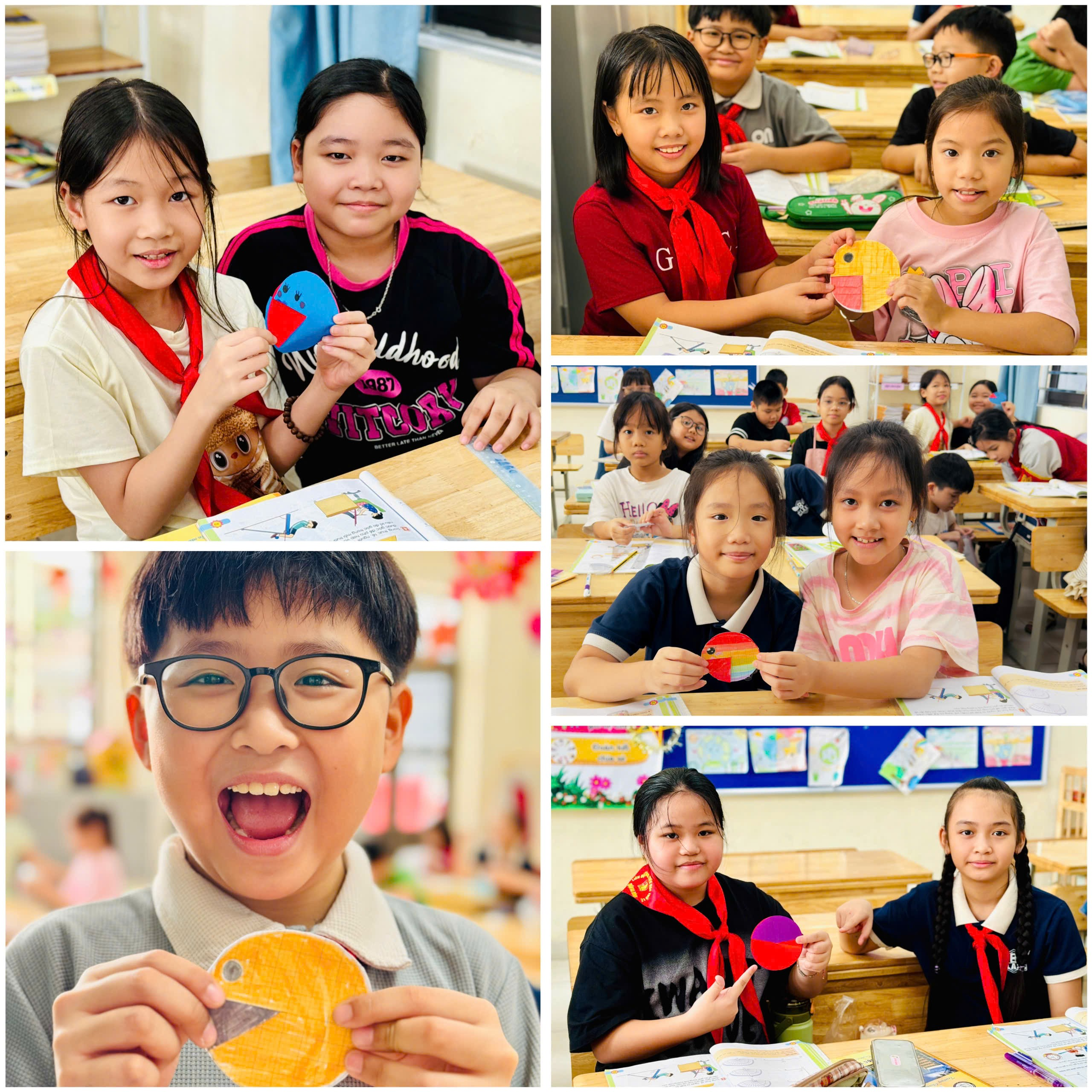 Trong tiết học Bài 19: Góc nhọn, góc tù, góc bẹt, các bạn học sinh khối 4 đã được tham gia một hoạt động STEM thú vị: Tự tay làm nhân vật Pac-Man từ giấy màu để minh họa cho các loại góc trong thực tế.