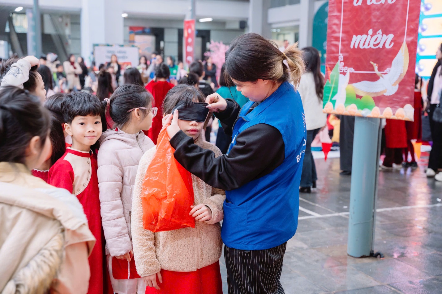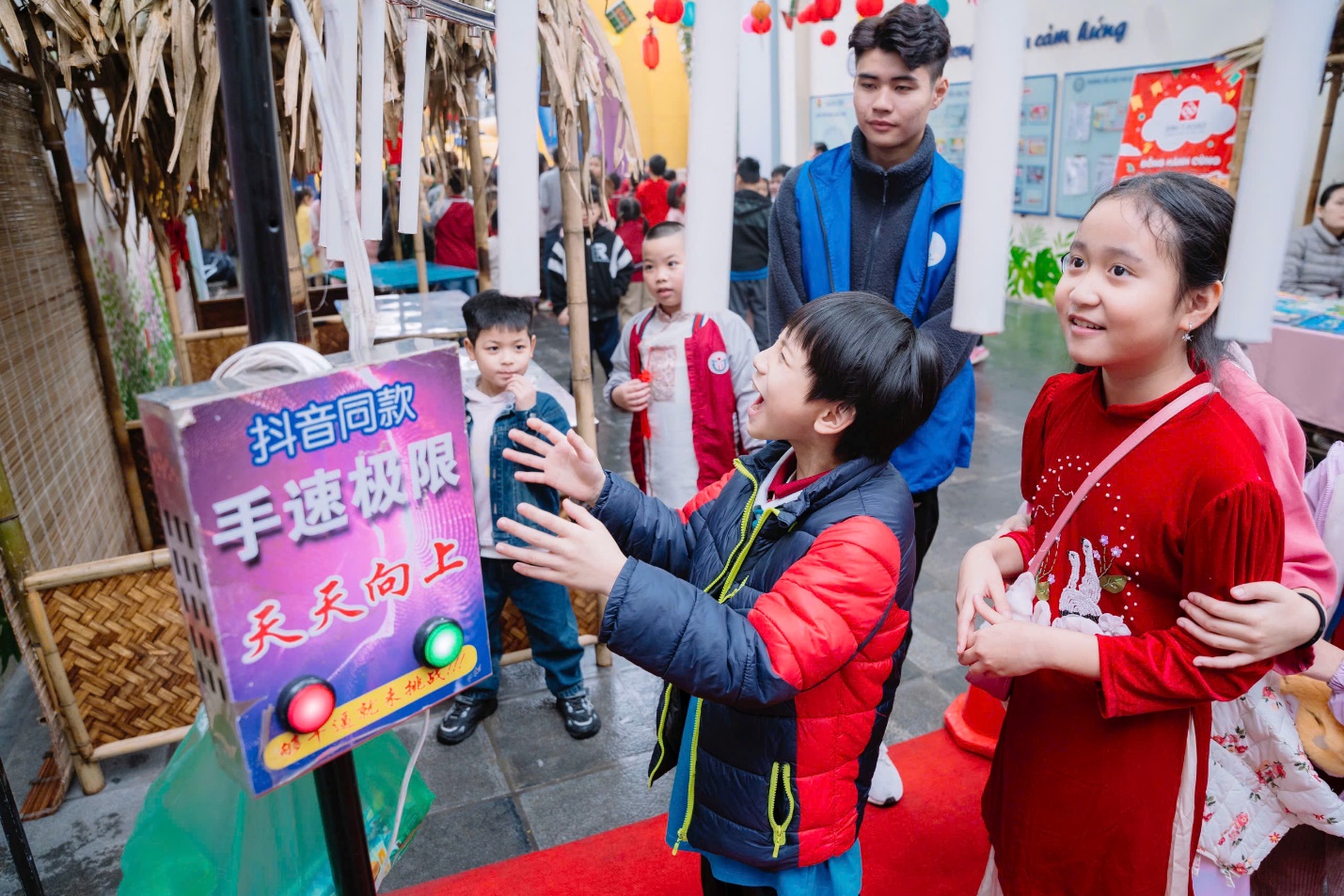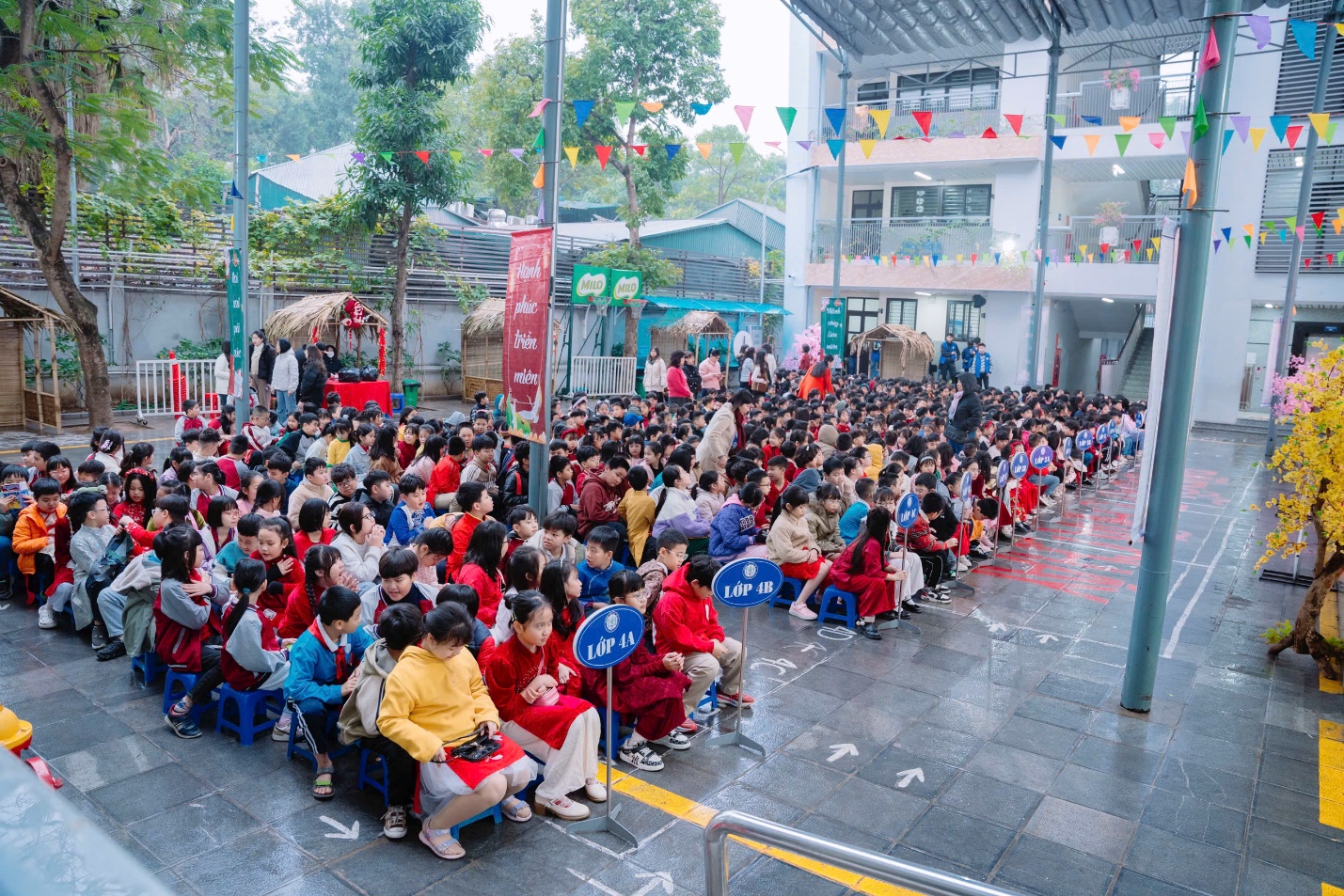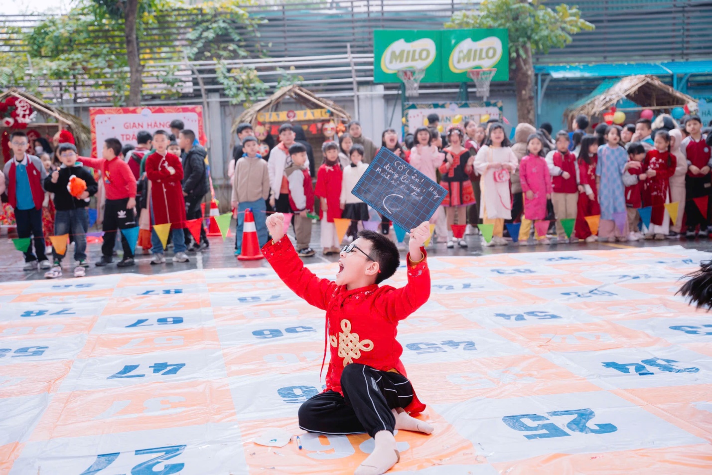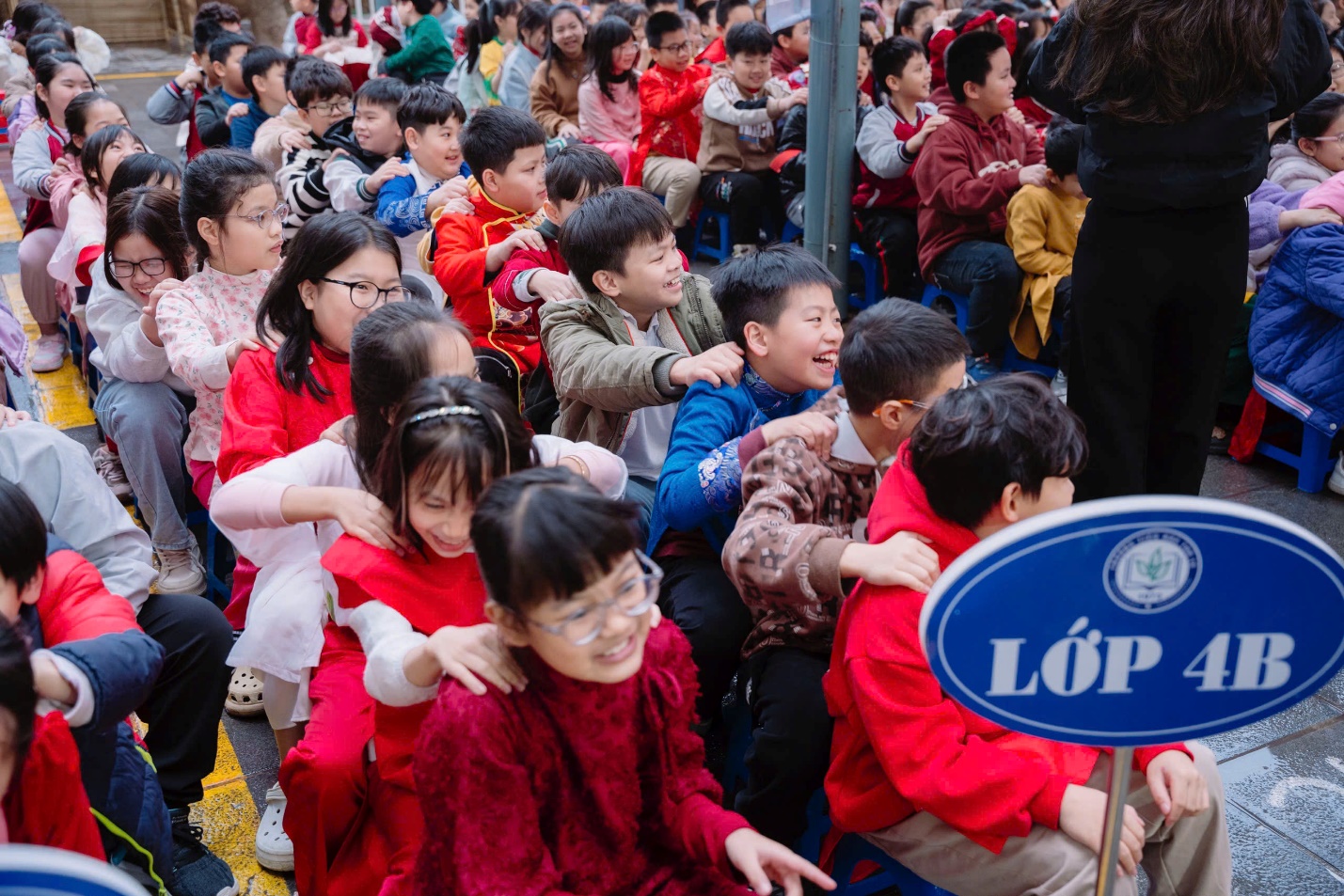 Ngoài những tiết mục văn nghệ, các em học sinh khối 4 còn tham gia vào nhiều trò chơi dân gian thú vị như: bịt mắt đánh trống, ô ăn quan và vòng quay may mắn,…. Những trò chơi này không chỉ giúp các em vui chơi thỏa thích mà còn tạo nên những kỷ niệm đẹp trong không khí xuân tươi mới.