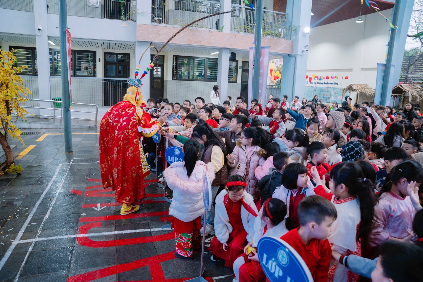 Chương trình đã diễn ra vô cùng sôi nổi với nhiều tiết mục đặc sắc. Màn biểu diễn Múa lân sư rồng mở đầu chương trình đã tạo nên một không khí hứng khởi, làm say lòng tất cả các em học sinh và quý phụ huynh có mặt. Tiếp theo là phần biểu diễn trống hội, với những âm thanh mạnh mẽ và sống động, mang đến không khí Tết rộn ràng.