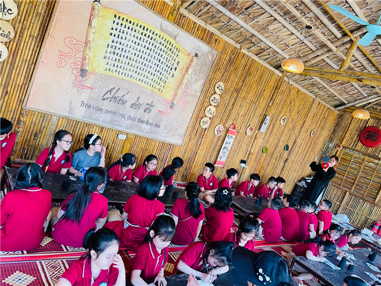 Ngay từ những giây phút đầu tiên của chuyến tham quan, các em học sinh đã thể hiện rõ sự hào hứng khi được tìm hiểu về lịch sử qua những câu chuyện hấp dẫn. Câu chuyện về "Chiếu dời đô" và hành trình của vua Lý Công Uẩn dời đô từ Hoa Lư về Thăng Long đã cuốn hút các em. Không khí háo hức tràn ngập khi các em lắng nghe về phòng tuyến Sông Cầu và những trận đánh oai hùng của du kích Đình Bảng. Những kiến thức lịch sử không chỉ được tiếp thu một cách sinh động mà còn khơi dậy niềm tự hào về quê hương, đất nước trong lòng các em.