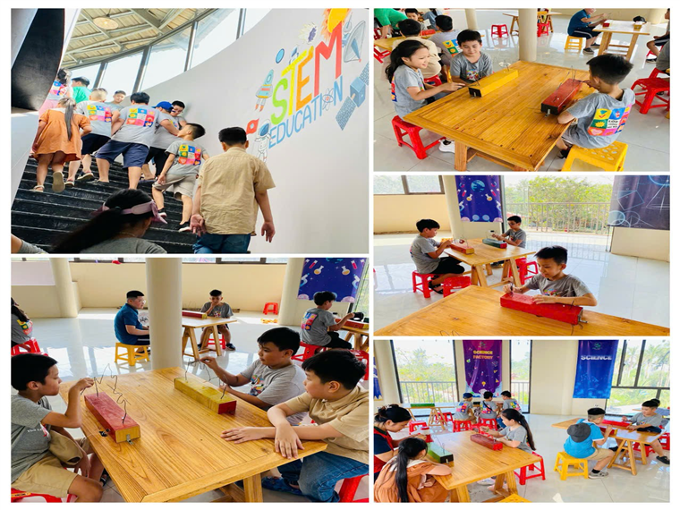 Hoạt động khoa học sáng tạo cũng là một điểm nhấn của chuyến đi. Các thí nghiệm liên quan đến điện từ và từ trường đã kích thích trí tò mò và khơi dậy niềm đam mê khám phá trong các em. Đặc biệt, các hoạt động tái chế vật dụng từ rác thải nhựa đã giúp các em hiểu thêm về trách nhiệm bảo vệ môi trường, góp phần nuôi dưỡng ý thức sống xanh từ nhỏ.