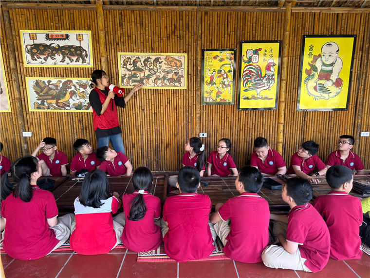 Bên cạnh đó, các hoạt động văn hóa đã mang lại niềm vui và sự say mê không kém. Các em đã hào hứng tham gia làm tranh Đông Hồ, một nghệ thuật dân gian nổi tiếng của Bắc Ninh, giúp các em thêm trân trọng những giá trị văn hóa truyền thống. Việc tự tay tạo ra những bức tranh không chỉ phát huy khả năng sáng tạo mà còn giúp các em hiểu rõ hơn về nét đẹp văn hóa của quê hương.