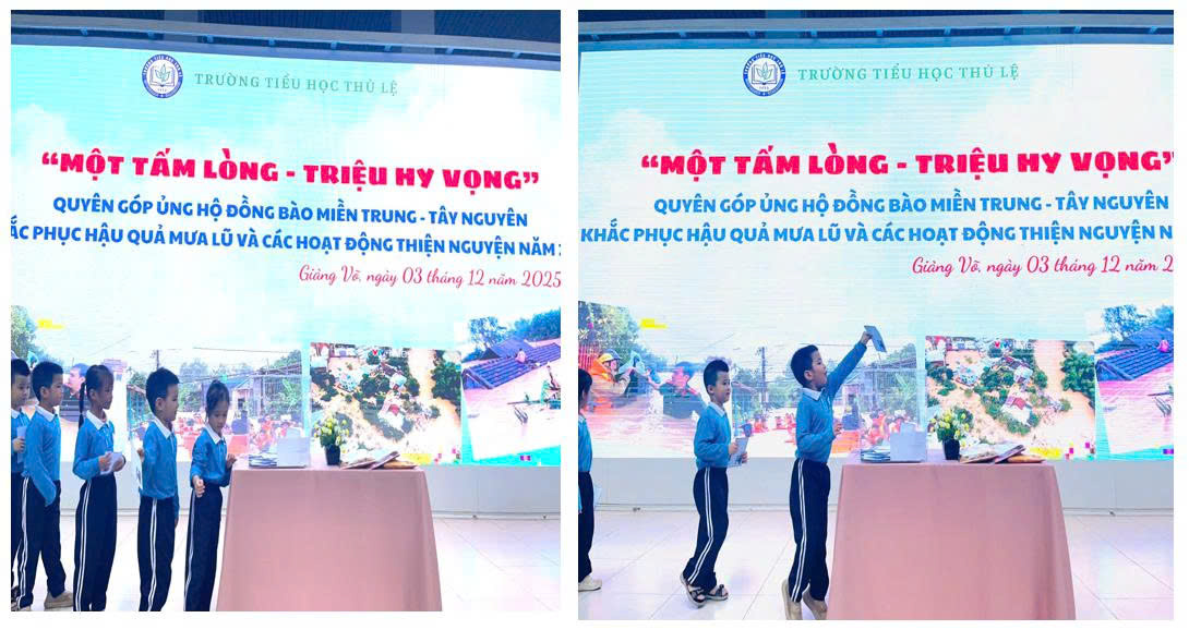 Hưởng ứng lời kêu gọi của nhà trường, tập thể lớp 1C – Trường Tiểu học Thủ Lệ đã đồng lòng chung tay bằng một hoạt động thật giản dị mà ấm áp: quyên góp ủng hộ đồng bào miền Trung – Tây Nguyên.