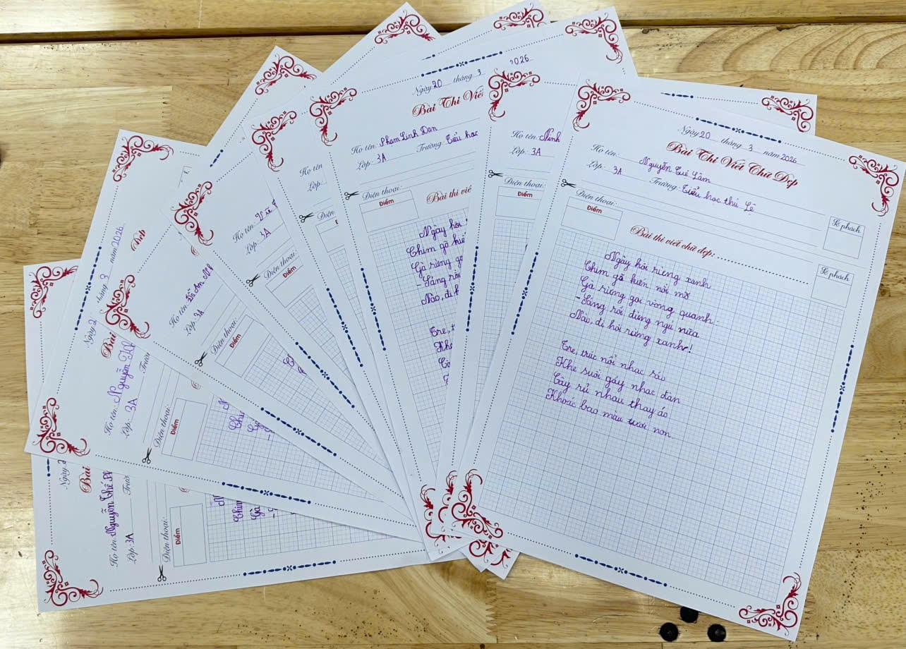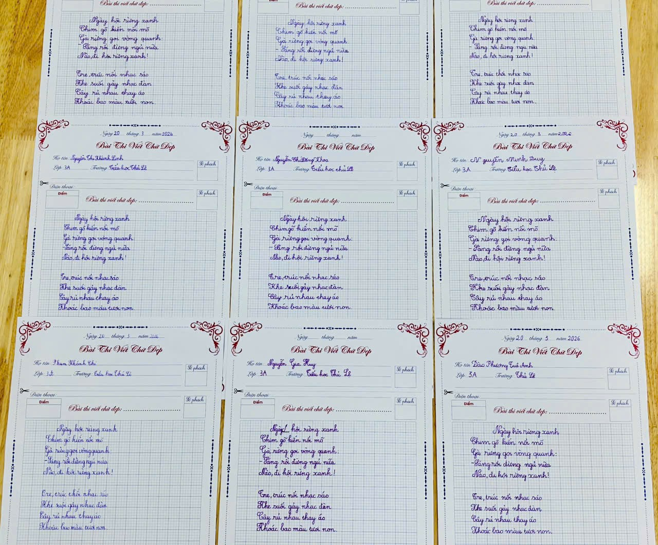 Hưởng ứng Ngày hội đọc sách của nhà trường, các bạn học sinh lớp 3A đã tích cực tham gia hoạt động viết chữ đẹp. Với tinh thần chăm chỉ và say mê, các bạn đã nắn nót từng nét chữ, trình bày bài viết sạch sẽ, rõ ràng.