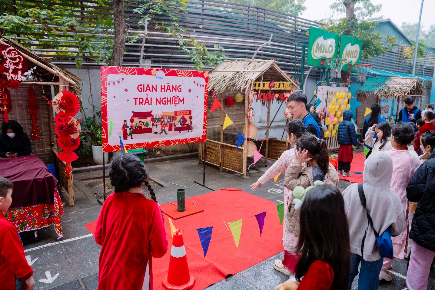 Với mong muốn tái hiện chân thực không khí chợ phiên cuối năm của người Việt, nhà trường đã tổ chức 6 gian hàng, đại diện cho từng khối lớp từ 1 đến 5 và khối Văn - Thể - Mỹ. Mỗi gian hàng đều được trang trí rực rỡ sắc màu, mang đậm phong cách truyền thống, thể hiện tình yêu sâu sắc đối với văn hóa dân tộc.