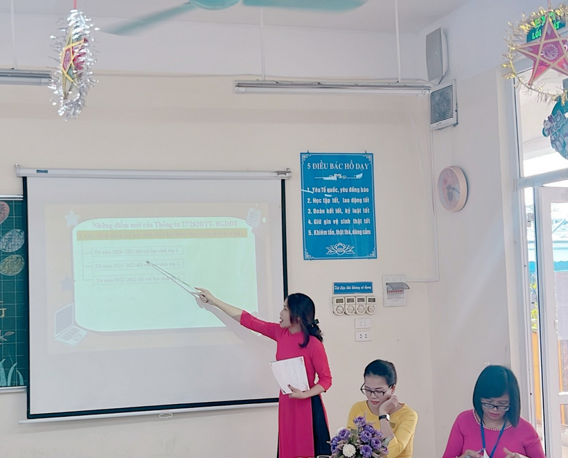 Tiếp theo Đ/c Trịnh Phương Linh – Bí thư Chi bộ, Hiệu trưởng nhà trường thông qua các kế hoạch, chương trình sẽ triển khai trong năm học mới 2022 – 2023.