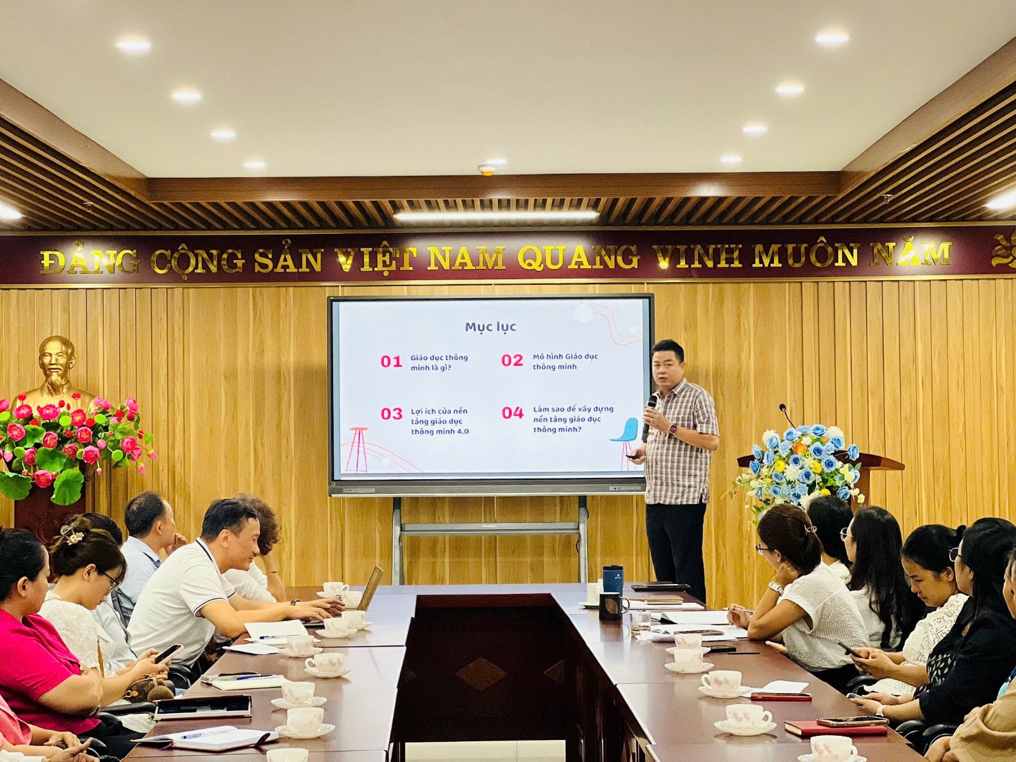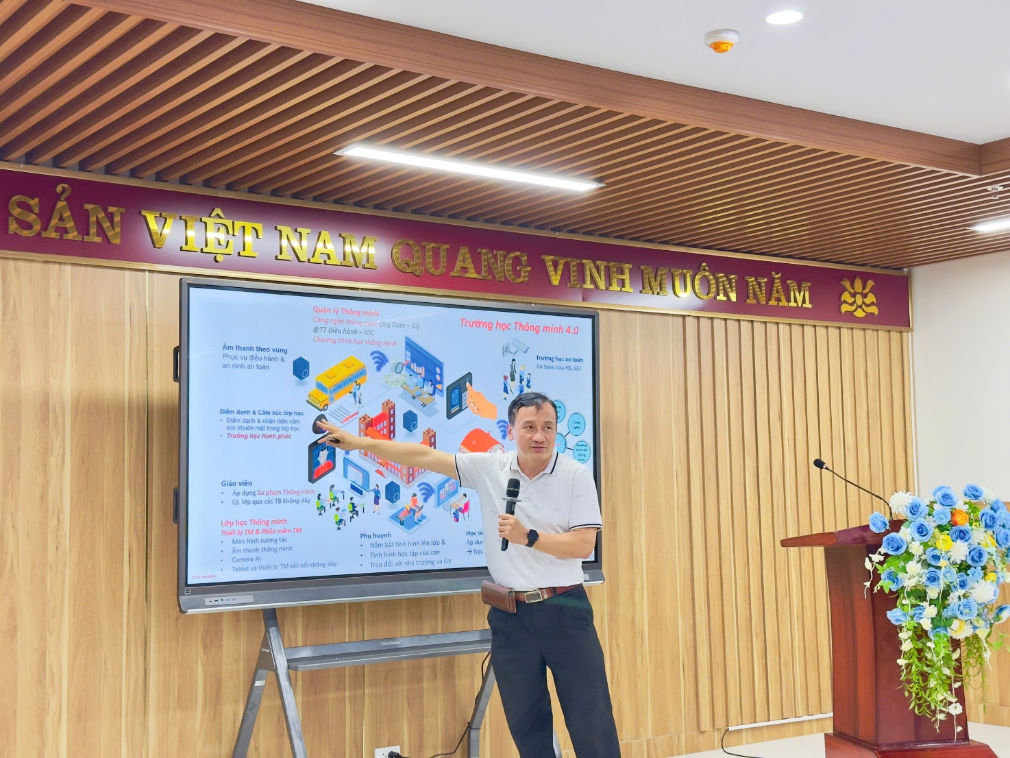 Ông Nguyễn Chấn Hùng – Tiến sĩ CNTT- chuyên gia giải pháp về Trường học Thông minh thuyết trình về lợi ích của việc xây dựng “Trường học Thông minh”