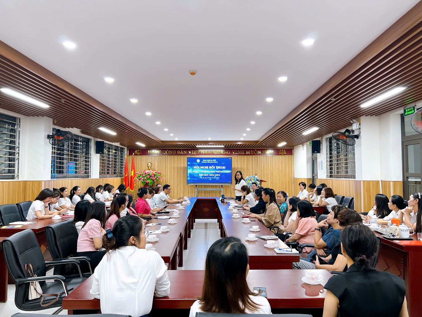 Với tinh thần làm việc nghiêm túc, trách nhiệm cao, sau một thời gian làm việc tích cực, Hội nghị đối thoại giữa hiệu trưởng với đội ngũ giáo viên, nhân viên, CMHS trong nhà trường với nội dung đối thoại “Xây dựng Trường học Thông minh năm học 2024 -2025” đã kết thúc tốt đẹp. Các ý kiến thắc mắc và góp ý của giáo viên, nhân viên và CMHS đều được BGH nhà trường tiếp nhận, giải đáp thỏa đáng trên tinh thần cởi mở, chân thành, thẳng thắn và xây dựng.