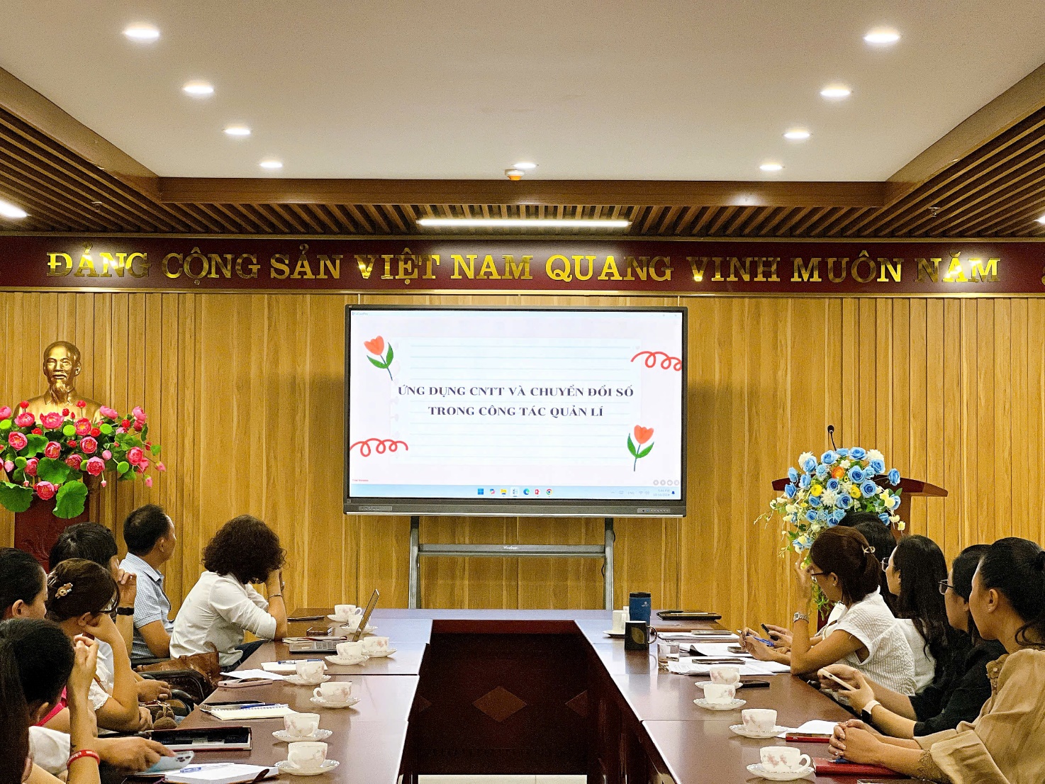 Hội nghi xem video ngắn về ứng dụng CNTT và chuyển đổi số trong công tác quản lí của nhà trường