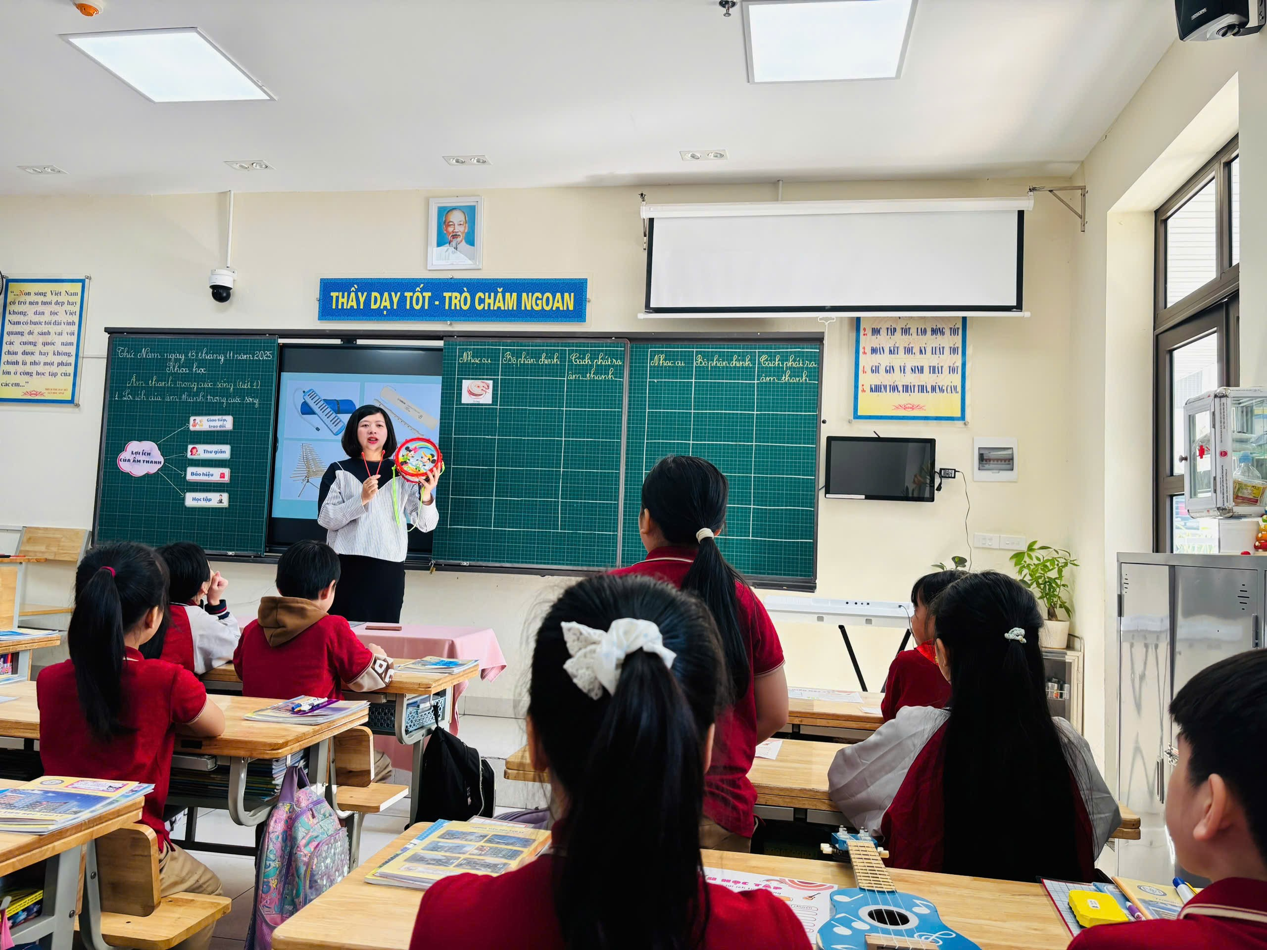 Âm thanh là một phần không thể thiếu trong cuộc sống hằng ngày – từ tiếng nói, tiếng nhạc cho đến những âm thanh báo hiệu quen thuộc quanh ta. Trong tiết học “Âm thanh trong cuộc sống” do cô giáo Nguyễn Vũ Phương Uyên – GVCN lớp 4B giảng dạy, các em học sinh đã được trải nghiệm một hành trình thú vị. Các em không chỉ được học kiến thức trong bài học Khoa học, mà còn được tìm hiểu về nhạc cụ và ứng dụng STEM làm nhạc cụ bằng những vật liệu đơn giản.