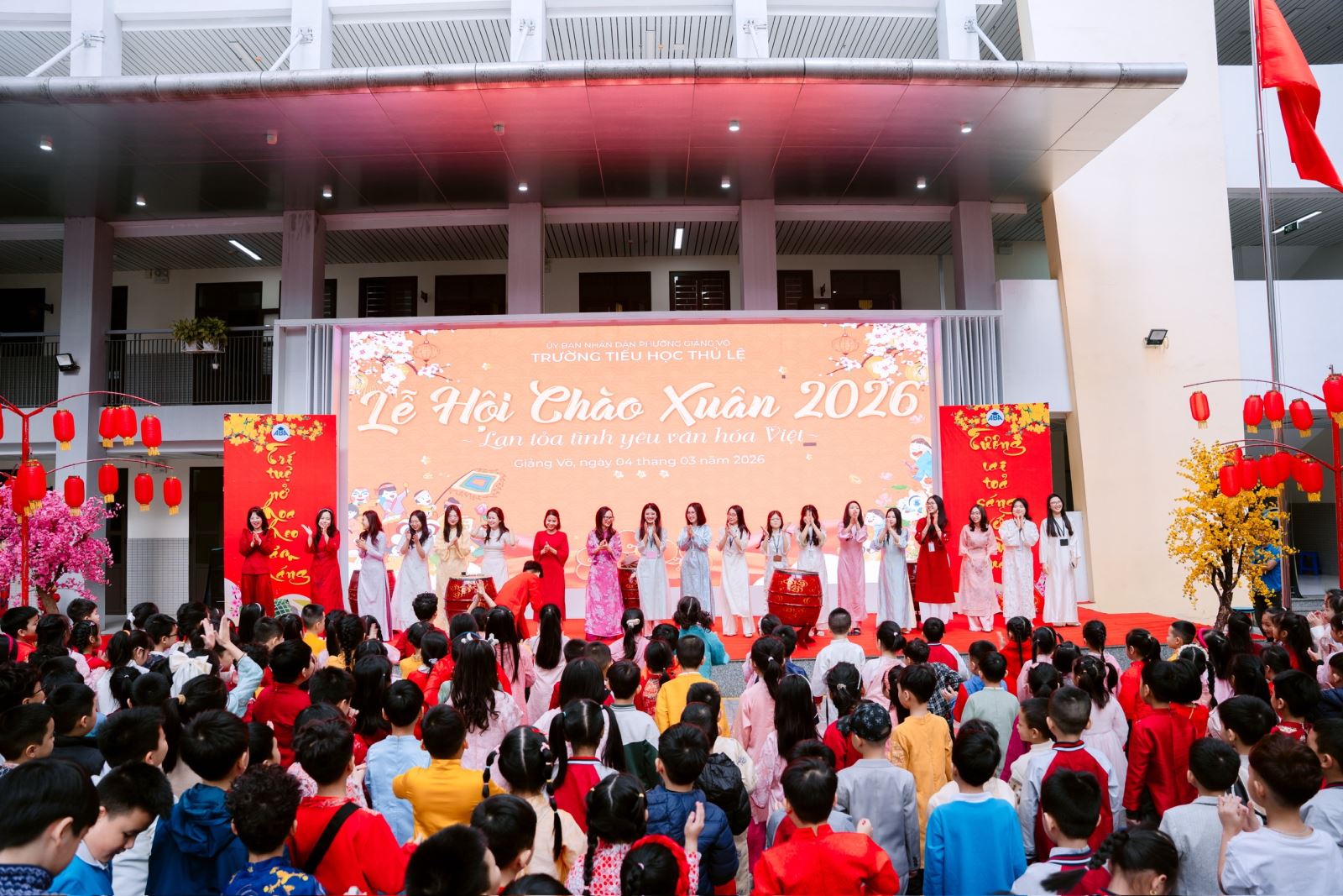 Bên cạnh nhiệm vụ chuyên môn, đoàn giáo sinh còn tích cực tham gia vào các hoạt động chung của nhà trường như: Chào mừng Ngày Quốc tế Phụ nữ 8/3, Hội chợ Xuân 2026, các hoạt động kỷ niệm ngày Quốc tể Hạnh phúc 20/3, ngày Thành lập Đoàn TNCS Hồ Chí Minh 26/3,… Cùng nhà trường chào đón các em học sinh Trường Mầm non Tuổi Thơ đến tham quan, trải nghiệm. Tham gia hỗ trợ chương trình Rung chuông vàng khối 1, 2 và tham gia thi kéo co nhân Ngày Thể thao Việt Nam 27/3,... Những hoạt động này không chỉ góp phần làm phong phú đời sống học đường mà còn giúp giáo sinh rèn luyện kỹ năng tổ chức, phối hợp và tinh thần trách nhiệm trong môi trường giáo dục.