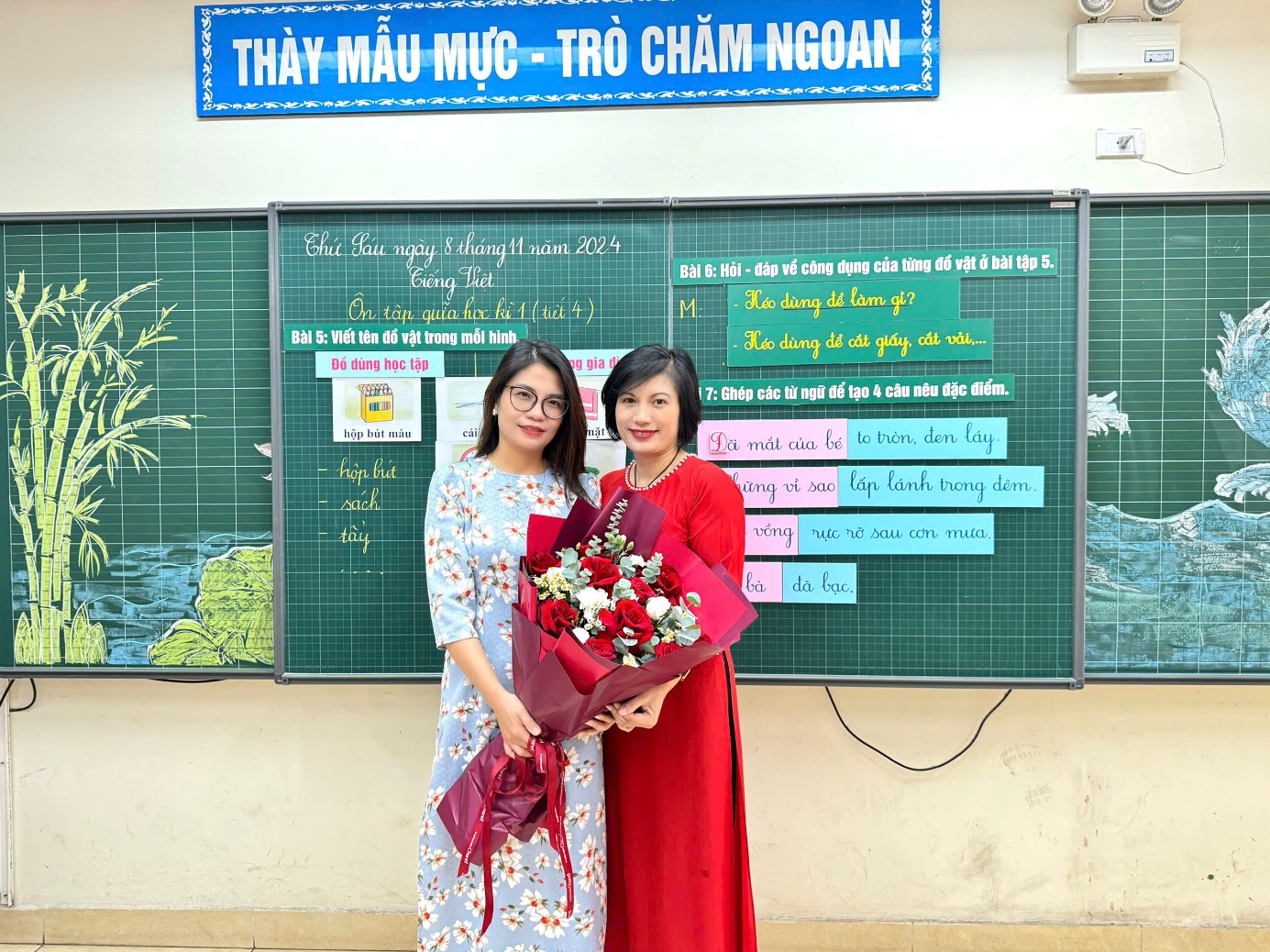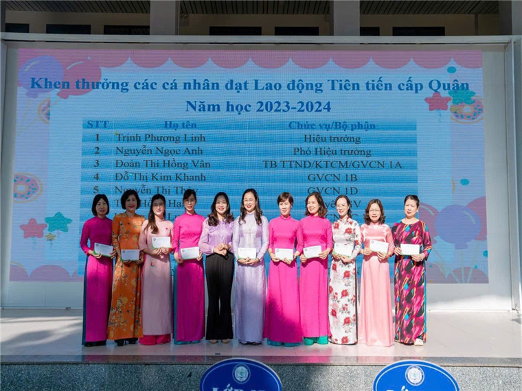 Tại lễ kỉ niệm, học sinh khối 2 cũng đã tham gia tiết mục văn nghệ bài “Bụi phấn”. Giọng hát trong sáng, truyền cảm của bạn Thùy Linh lớp 2A cùng màn múa dịu dàng, nhẹ nhàng của các con học sinh khối 2 đã để lại những cảm xúc sâu lắng, khó phai trong lòng người xem. Cũng trong buổi lễ này, cô giáo Bùi Thị Lan Hương, giáo viên chủ nhiệm lớp 2D và cô giáo Hoàng Thị Lương, giáo viên chủ nhiệm lớp 2C đã vinh dự được nhận danh hiệu khen thưởng Lao động tiên tiến cấp quận.