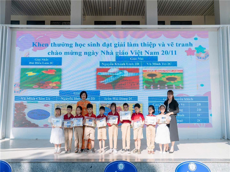 Một trong những hoạt động thú vị để chào mừng ngày Nhà giáo Việt Nam là cuộc thi vẽ tranh, làm thiệp dành cho các con học sinh. Với những ý tưởng sáng tạo và đôi bàn tay khéo léo, học sinh khối 2 đã làm nên những tấm thiệp rực rỡ, đầy màu sắc, những bức tranh không chỉ đẹp mà còn vô cùng ý nghĩa thể hiện sự tri ân đối với các thầy cô giáo trong dịp này.