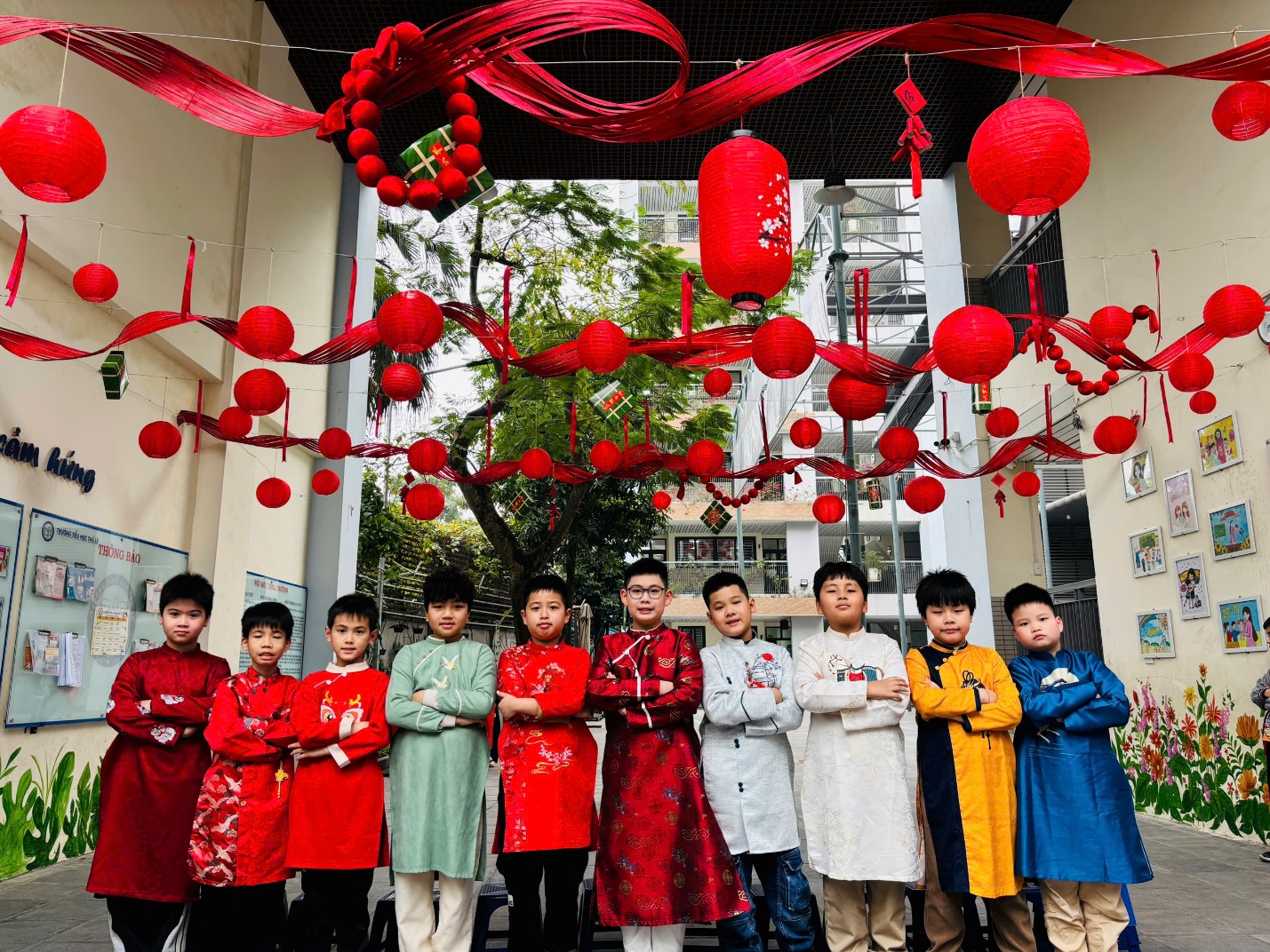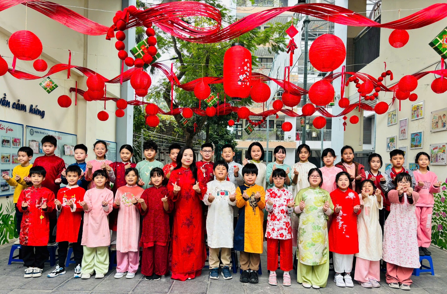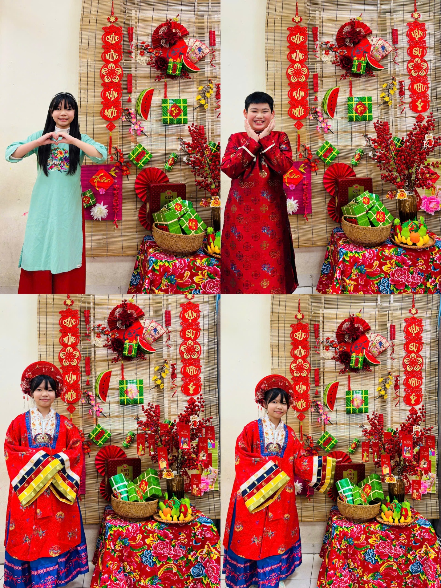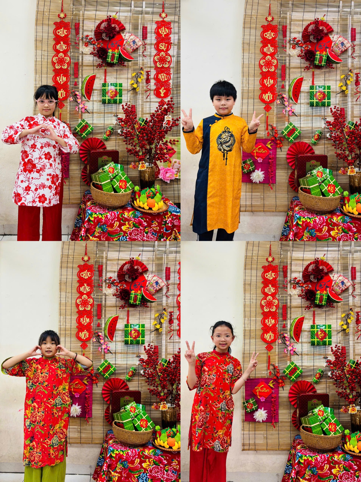 Không khí Tết Bính Ngọ 2026 đã rộn ràng ghé thăm lớp 4C thân yêu với thật nhiều niềm vui và sắc màu. Ngay từ sáng sớm, các bạn nhỏ đã háo hức diện những bộ áo dài xinh xắn để cùng nhau đón Tết.