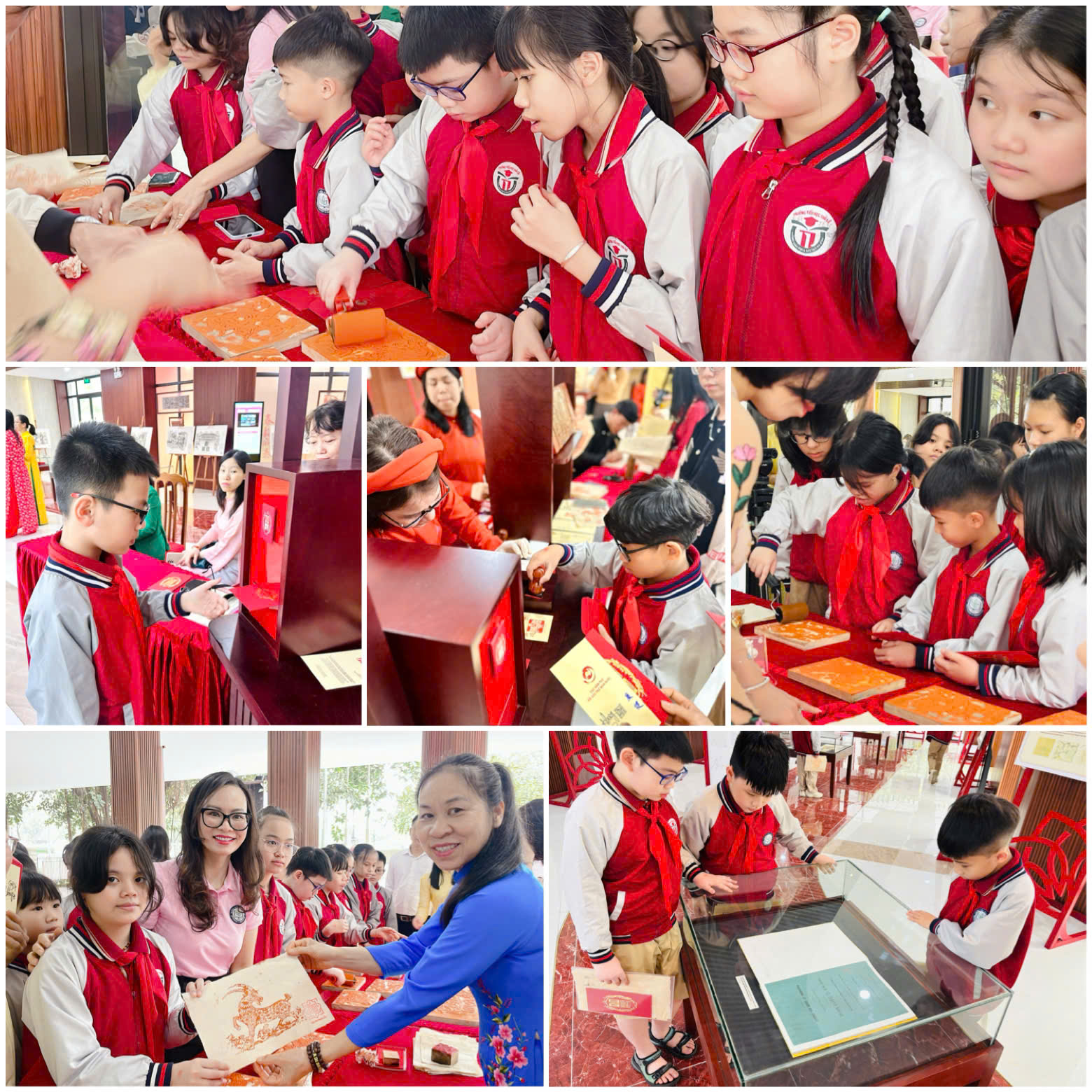 Điểm nhấn ấn tượng nhất của chương trình chính là hoạt động trải nghiệm “Lưu dấu Mộc bản”. Dưới sự hướng dẫn tận tình, các em được tự tay thực hiện kỹ thuật in dập mộc bản trên giấy dó, in ấn triện lên các tấm thiệp xuân và lưu giữ bản in ý nghĩa làm kỷ niệm. Mỗi sản phẩm hoàn thành không chỉ là thành quả lao động sáng tạo mà còn là “dấu ấn” văn hóa riêng của từng học sinh sau chuyến đi.