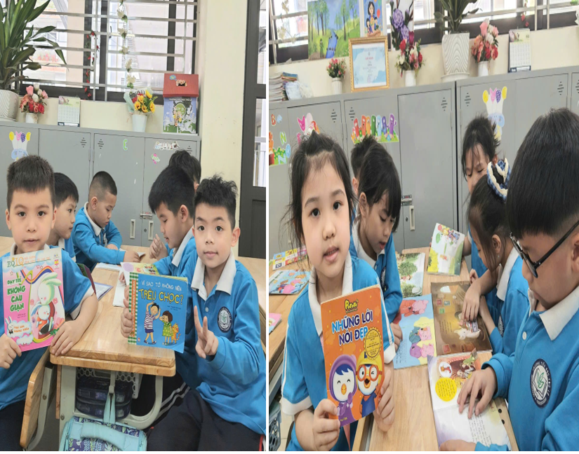 Ngay từ khi chương trình “Ngày sách và Văn hóa đọc” được phát động trong toàn trường, cô và trò lớp 1B đã tích cực tham gia với những hoạt động như quyên góp, ủng hộ sách truyện, thiết kế Bookmark (Thẻ dấu trang sách)..... Các con học sinh đã tham gia vào các hoạt động đa dạng, từ việc chia sẻ sách yêu thích cho đến việc kể lại những câu chuyện mà các em đã đọc trong các giờ đọc sách tiết đọc thư viện hay giờ đọc sách trong lớp. Qua những câu chuyện đó, các em còn học được cách tôn trọng sách và trân trọng những giá trị văn hóa mà sách mang lại. Việc hưởng ứng “Ngày sách và Văn hóa đọc Việt Nam” là một cơ hội tuyệt vời để các em rèn luyện kỹ năng sống, nuôi dưỡng tình yêu với sách và văn hóa đọc, và hình thành thói quen đọc sách. Cô và trò lớp 1B mang lại một không khí vui tươi, sôi nổi và ý nghĩa trong Ngày sách và Văn hóa đọc Việt Nam năm 2025.