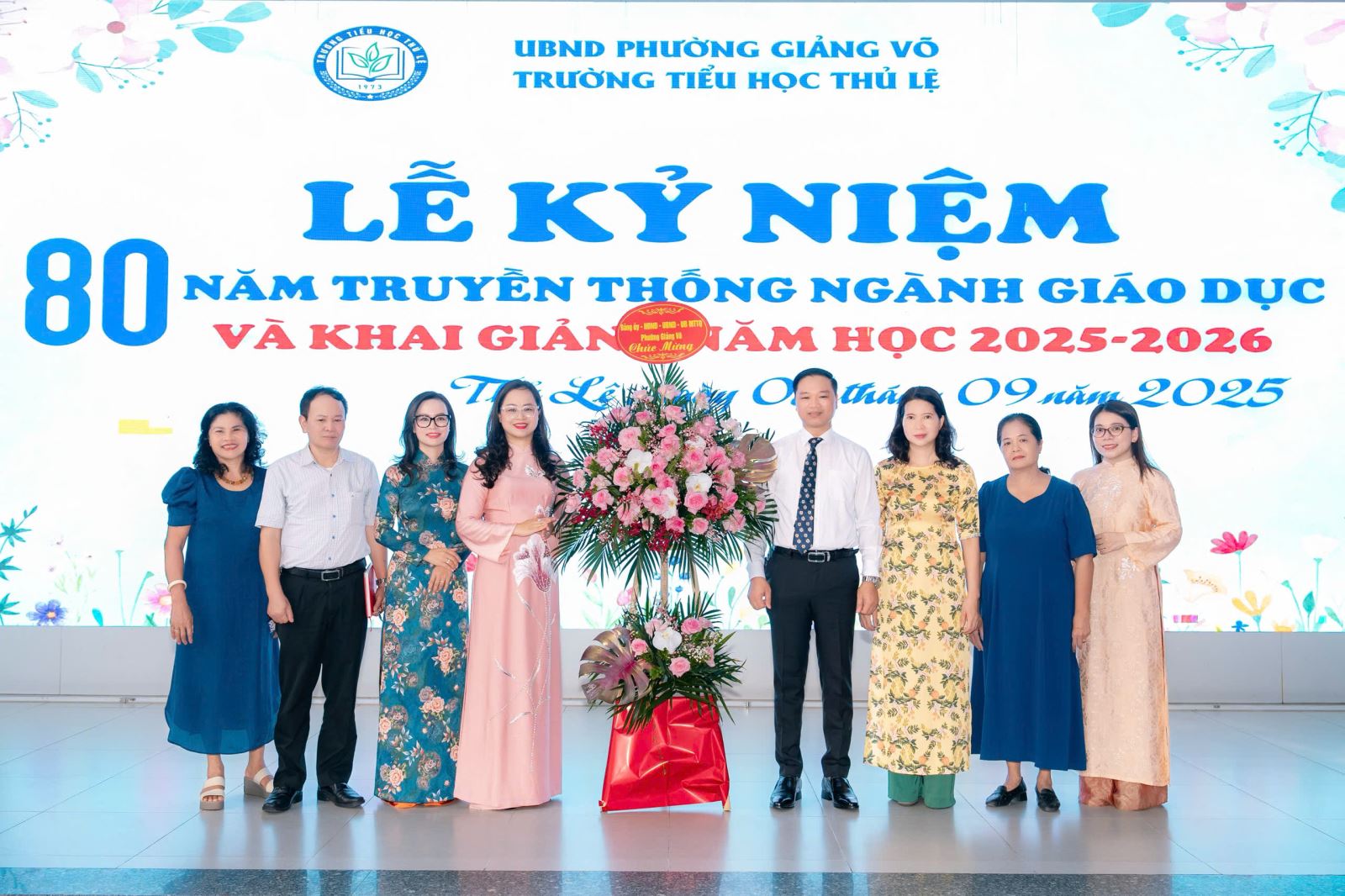 Lãnh đạo phường Giảng Võ tặng hoa chúc mừng nhà trường