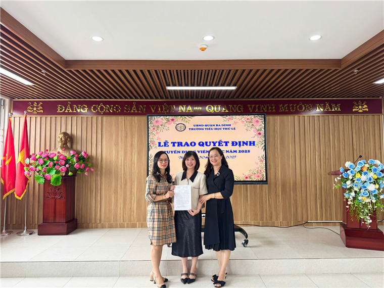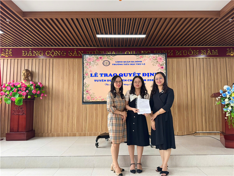 Tại buổi lễ, bà Trịnh Phương Linh - Hiệu trưởng Nhà trường và bà Nguyễn Ngọc Anh – Phó Hiệu trưởng đã trao quyết định, gửi lời chúc mừng đến các cô giáo trúng tuyển kỳ thi tuyển dụng viên chức năm 2025 và nhiệt liệt chào đón các cô giáo chính thức đến với mái nhà chung Trường Tiểu học Thủ Lệ. Ban Giám hiệu cũng chia sẻ đôi điều, mong muốn các viên chức mới được tuyển dụng cần ý thức được vinh dự và trách nhiệm đối với công việc; tiếp tục trau dồi kiến thức, nỗ lực phấn đấu, ham học hỏi, góp phần vào sự phát triển chung của Nhà trường.