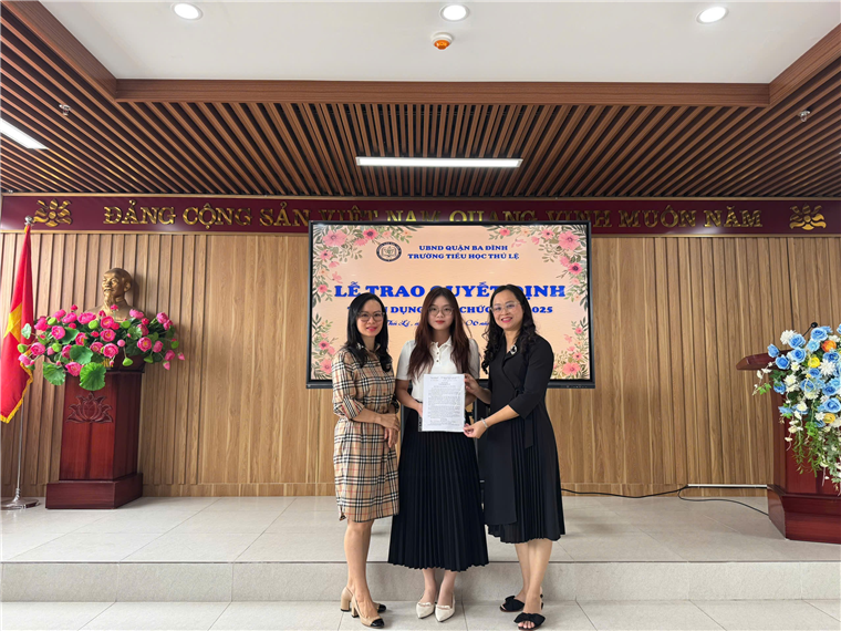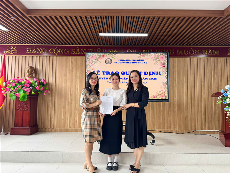 Sáng này 30/06/2025, Trường Tiểu học Thủ Lệ đã tổ chức Lễ trao quyết định tuyển dụng năm 2025 cho 4 viên chức vừa trúng tuyển kỳ thi tuyển dụng viên chức 2025.