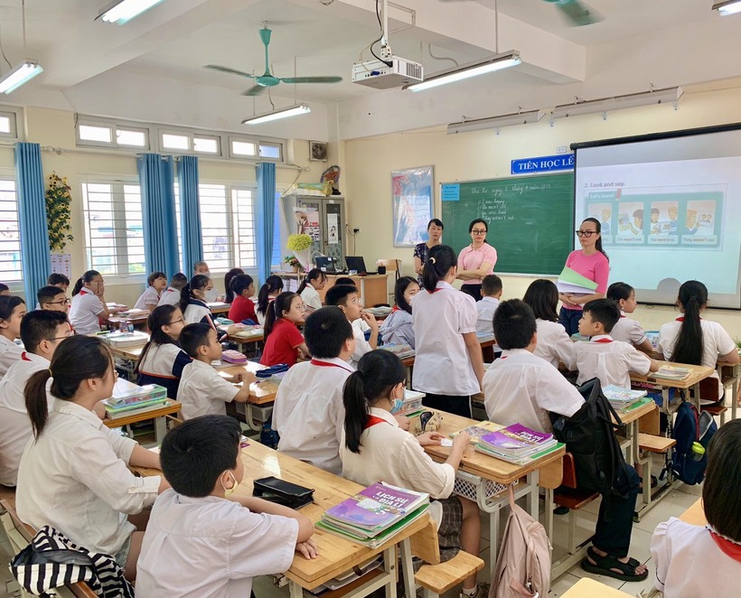 Ban giám hiệu kiểm tra nề nếp khối 5