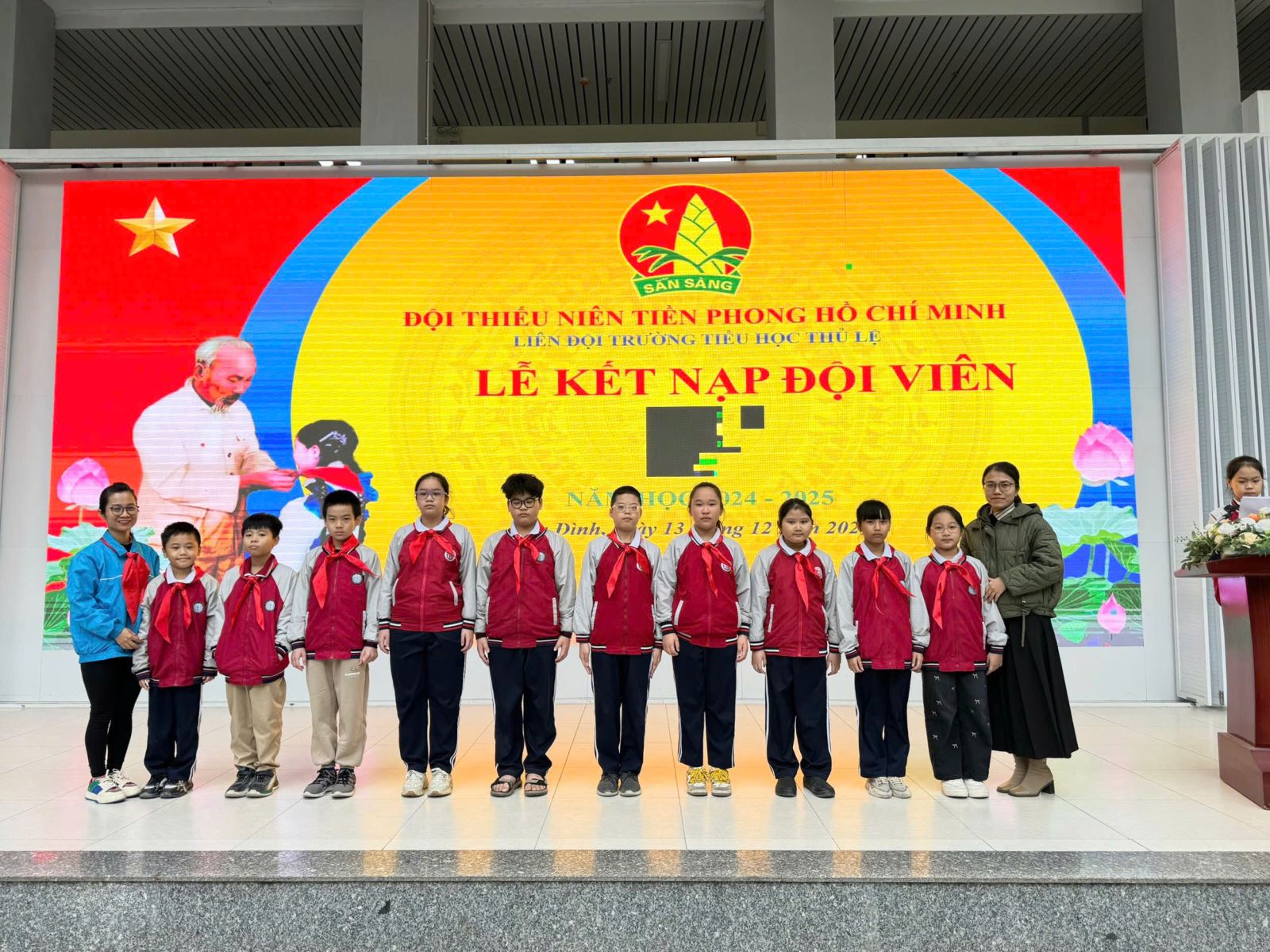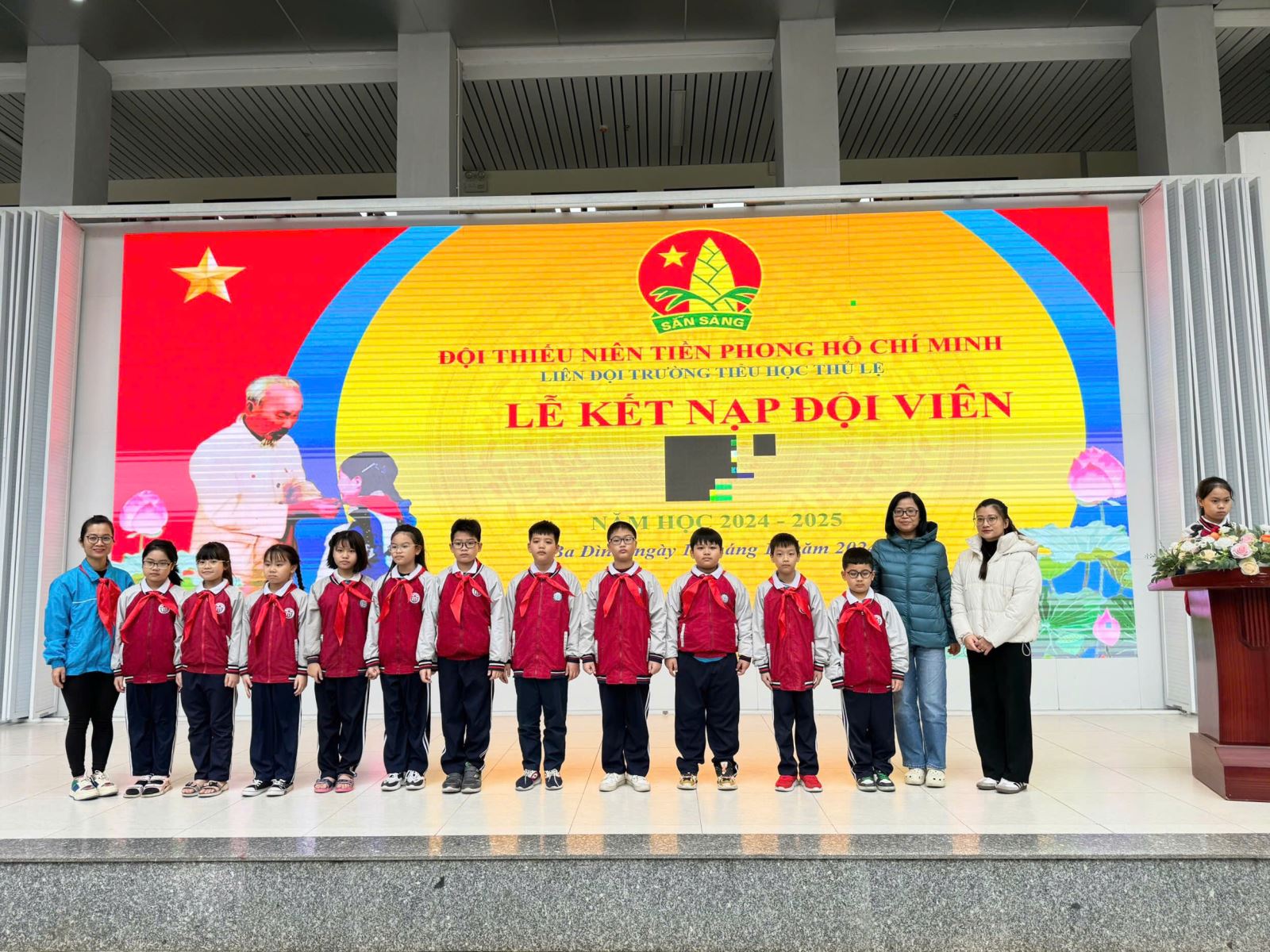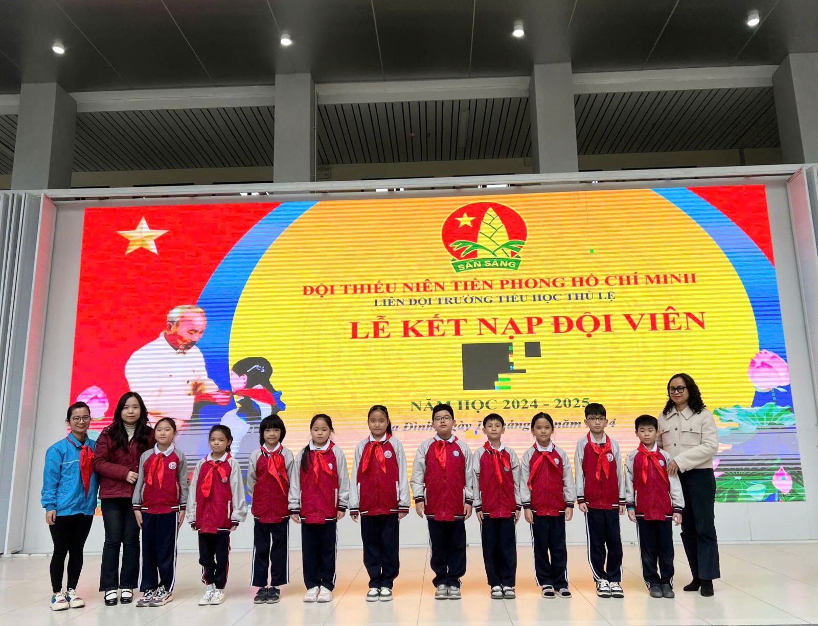 Hòa trong không khí vui tươi, phấn khởi của thiếu nhi cả nước lập thành tích chào mừng Kỷ niệm 80 năm ngày Thành lập Quân đội nhân dân Việt Nam (22/12/1944 – 22/12/2024); 35 năm ngày Hội Quốc phòng toàn dân (22/12/1989 – 22/12/2024) và chào mừng Đại hội Đại biểu toàn quốc Hội Liên hiệp thanh niên Việt Nam lần thứ IX nhiệm kỳ 2024-2029, được sự nhất trí của Ban giám hiệu, ngày 13/12/2024, Liên đội trường Tiểu học Thủ Lệ đã long trọng tổ chức lễ Kết nạp Đội viên mới cho 82 em thiếu nhi tiêu biểu của khối 4, 5. Buổi lễ được diễn tra trong không khí trang trọng, đánh dấu sự trưởng thành về mọi mặt của các em.