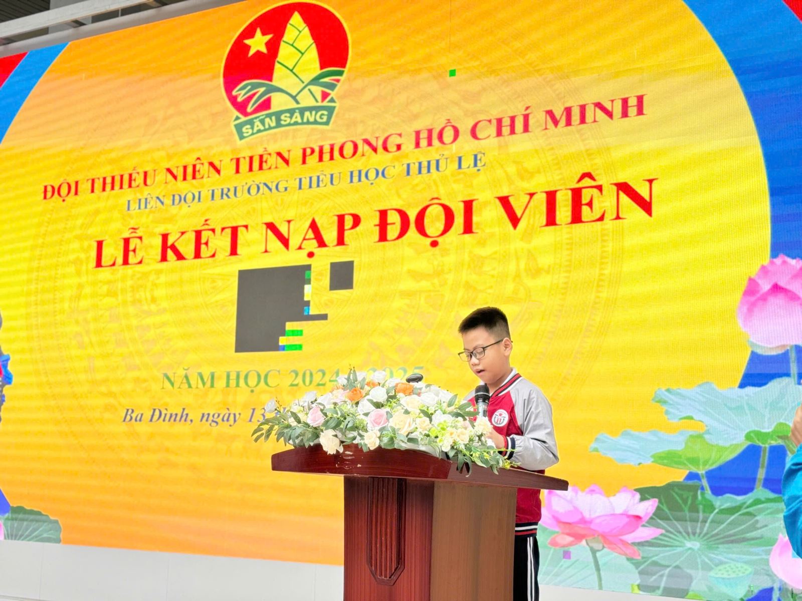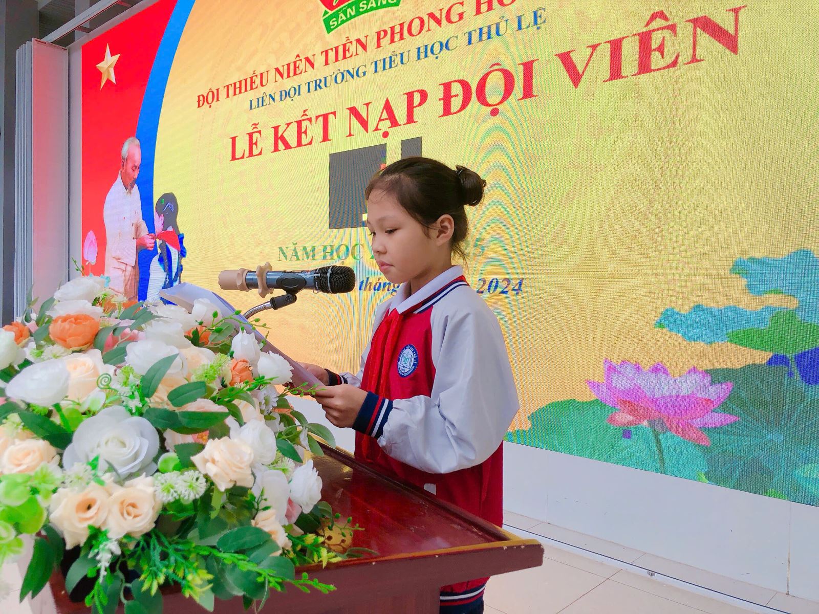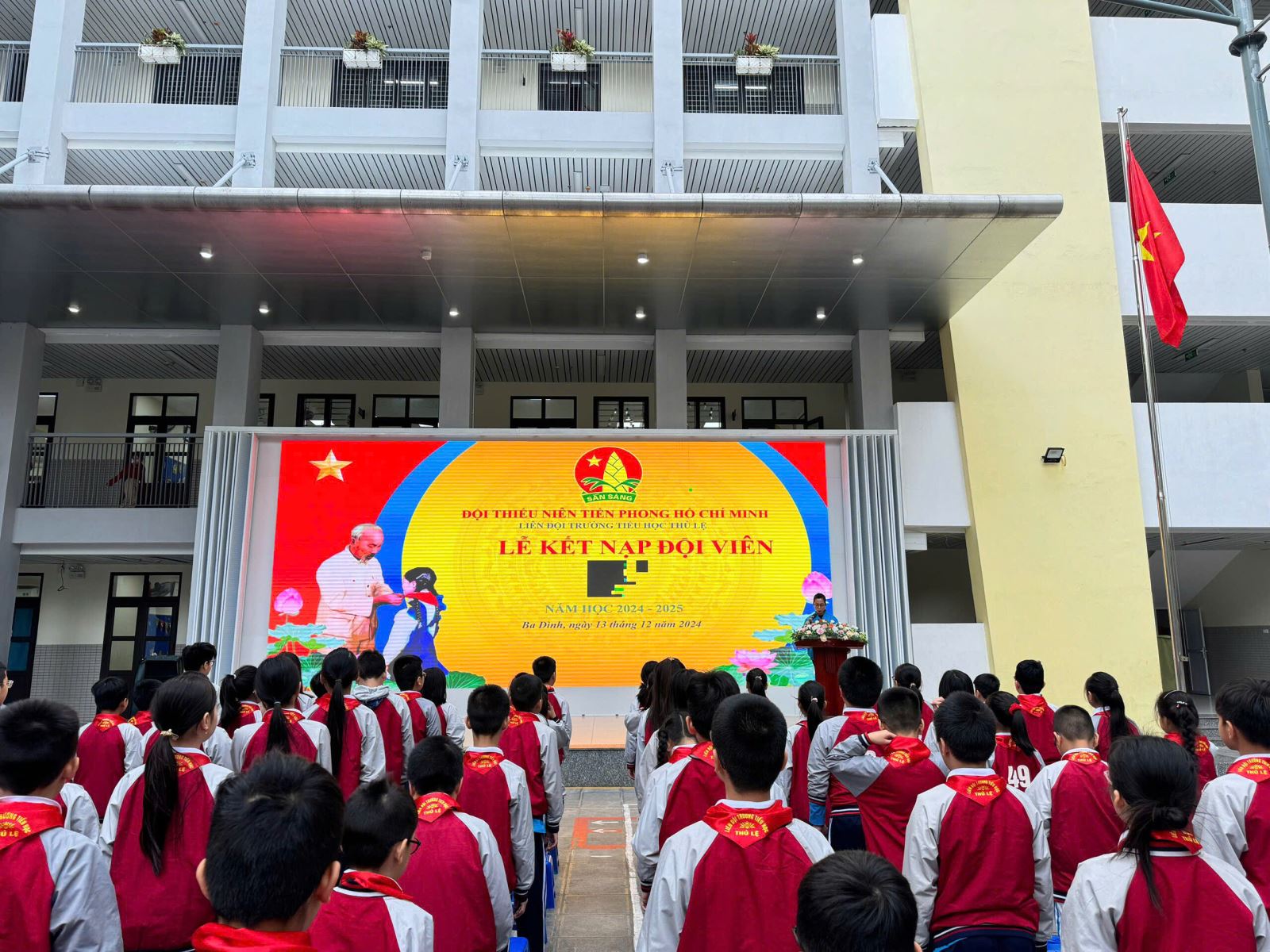 Hòa trong không khí vui tươi, phấn khởi của thiếu nhi cả nước lập thành tích chào mừng Kỷ niệm 80 năm ngày Thành lập Quân đội nhân dân Việt Nam (22/12/1944 – 22/12/2024); 35 năm ngày Hội Quốc phòng toàn dân (22/12/1989 – 22/12/2024) và chào mừng Đại hội Đại biểu toàn quốc Hội Liên hiệp thanh niên Việt Nam lần thứ IX nhiệm kỳ 2024-2029, được sự nhất trí của Ban giám hiệu, ngày 13/12/2024, Liên đội trường Tiểu học Thủ Lệ đã long trọng tổ chức lễ Kết nạp Đội viên mới cho 82 em thiếu nhi tiêu biểu của khối 4, 5. Buổi lễ được diễn tra trong không khí trang trọng, đánh dấu sự trưởng thành về mọi mặt của các em.