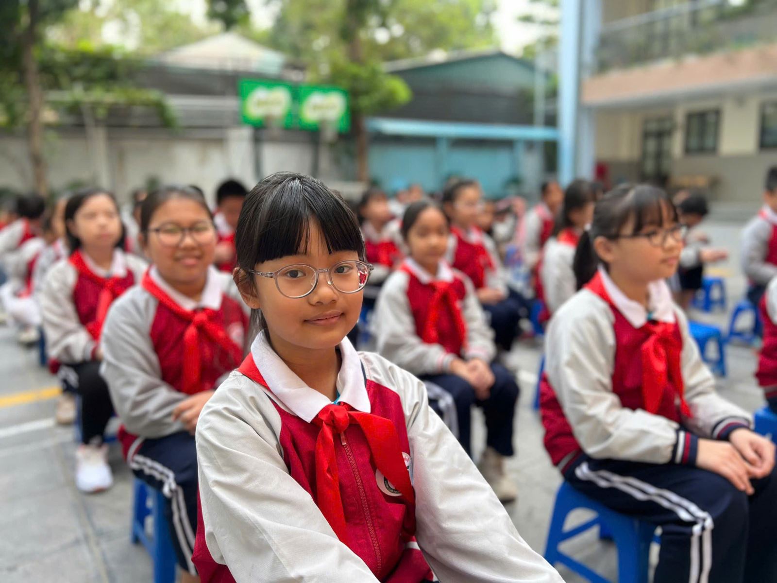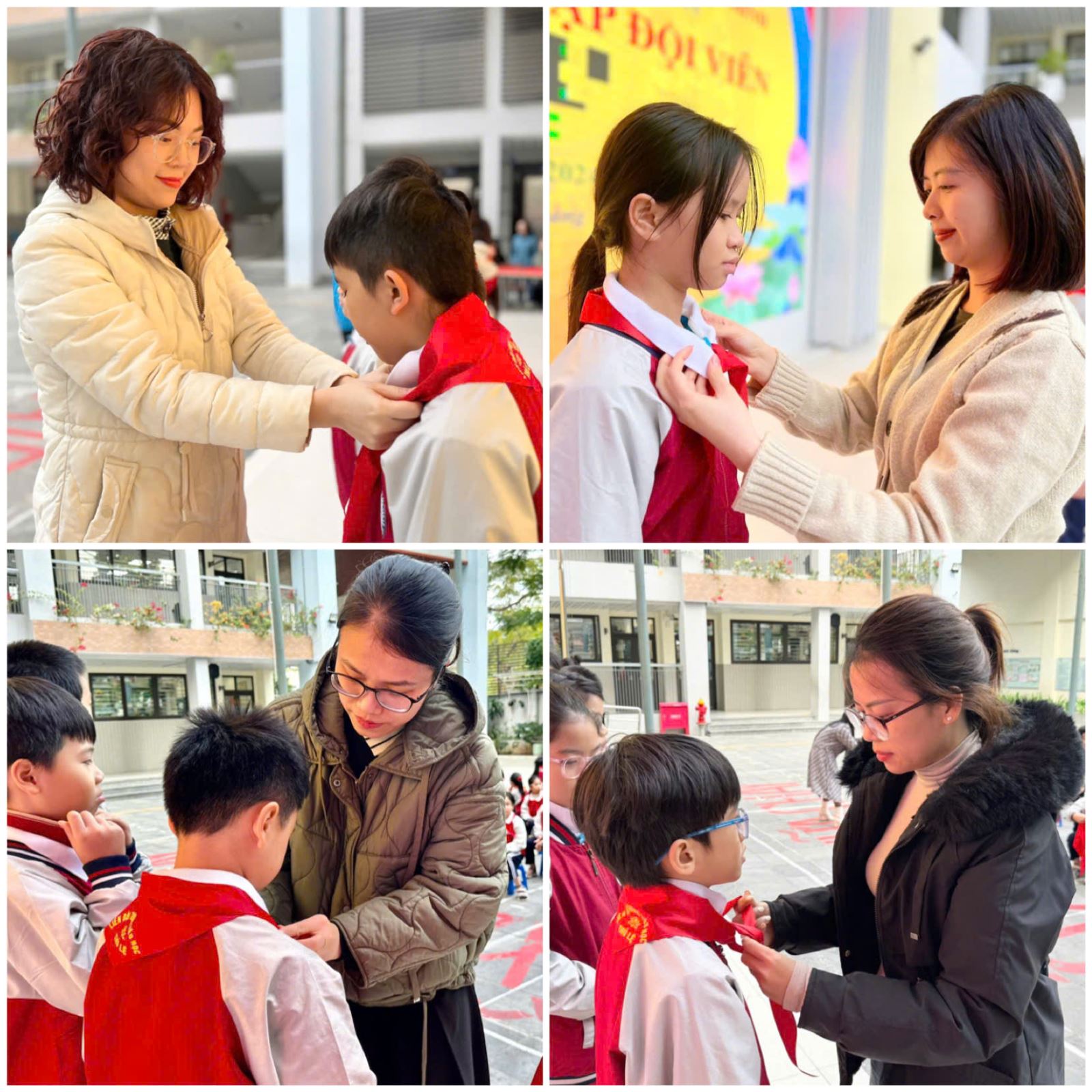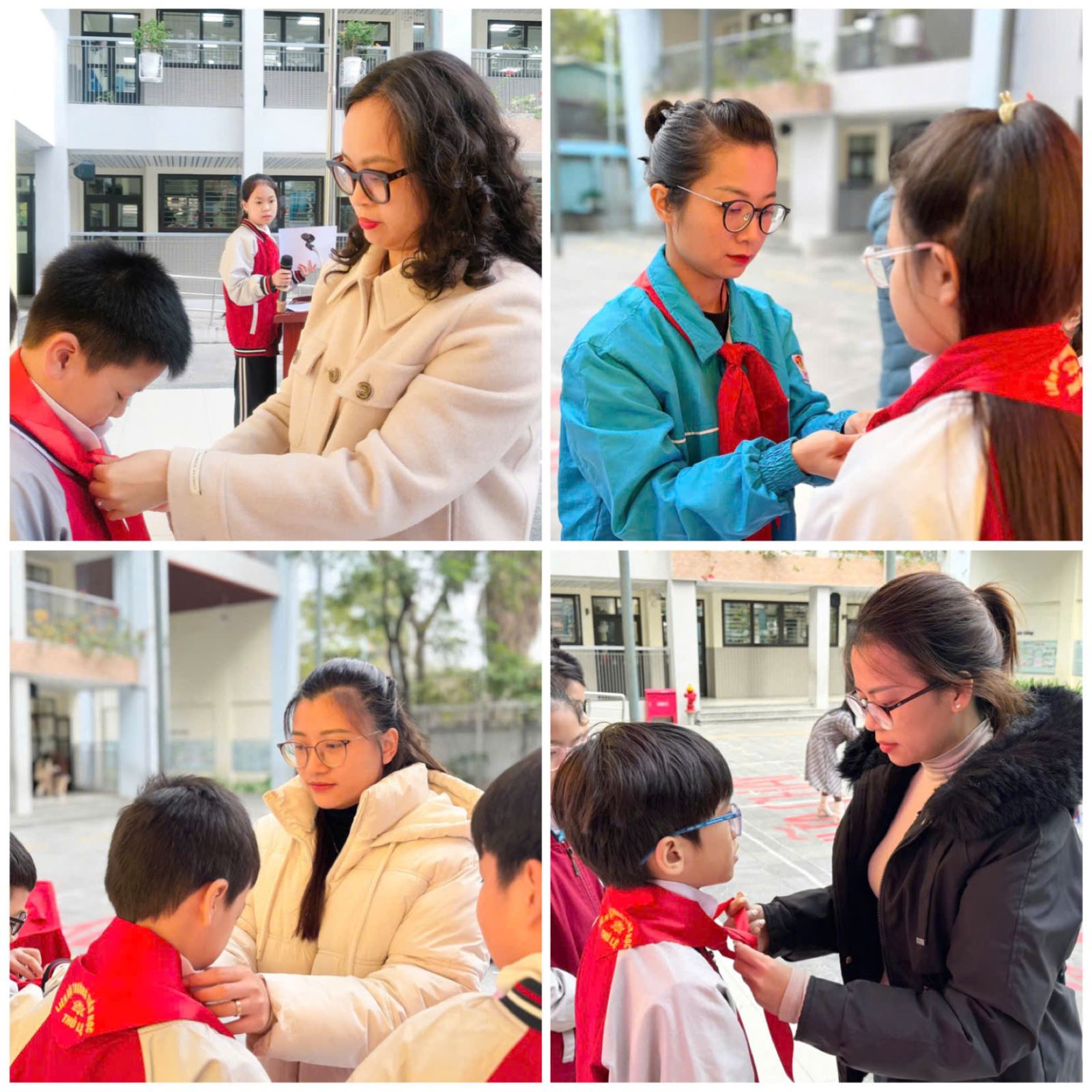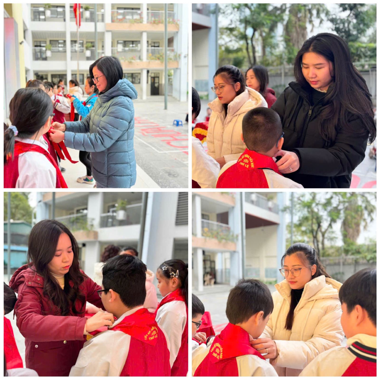 Giây phút các cô giáo trong Ban giám hiệu, cô giáo Tổng phụ trách và các cô giáo phụ trách các Chi đội trao chiếc khăn quàng đỏ thắm cho 82 em thiếu nhi tiêu biểu của khối 4, 5 sẽ trở thành một khoảng khắc đáng nhớ trong tâm trí của các em. Từ giây phút này, các em vinh dự được mang trên vai chiếc khăn đỏ thắm màu cờ Tổ quốc. Màu khăn đỏ như nhắc nhở các em phải phấn đấu vươn lên không ngừng để trở thành Đội viên tốt, xứng đáng là con ngoan trò giỏi – cháu ngoan Bác Hồ.