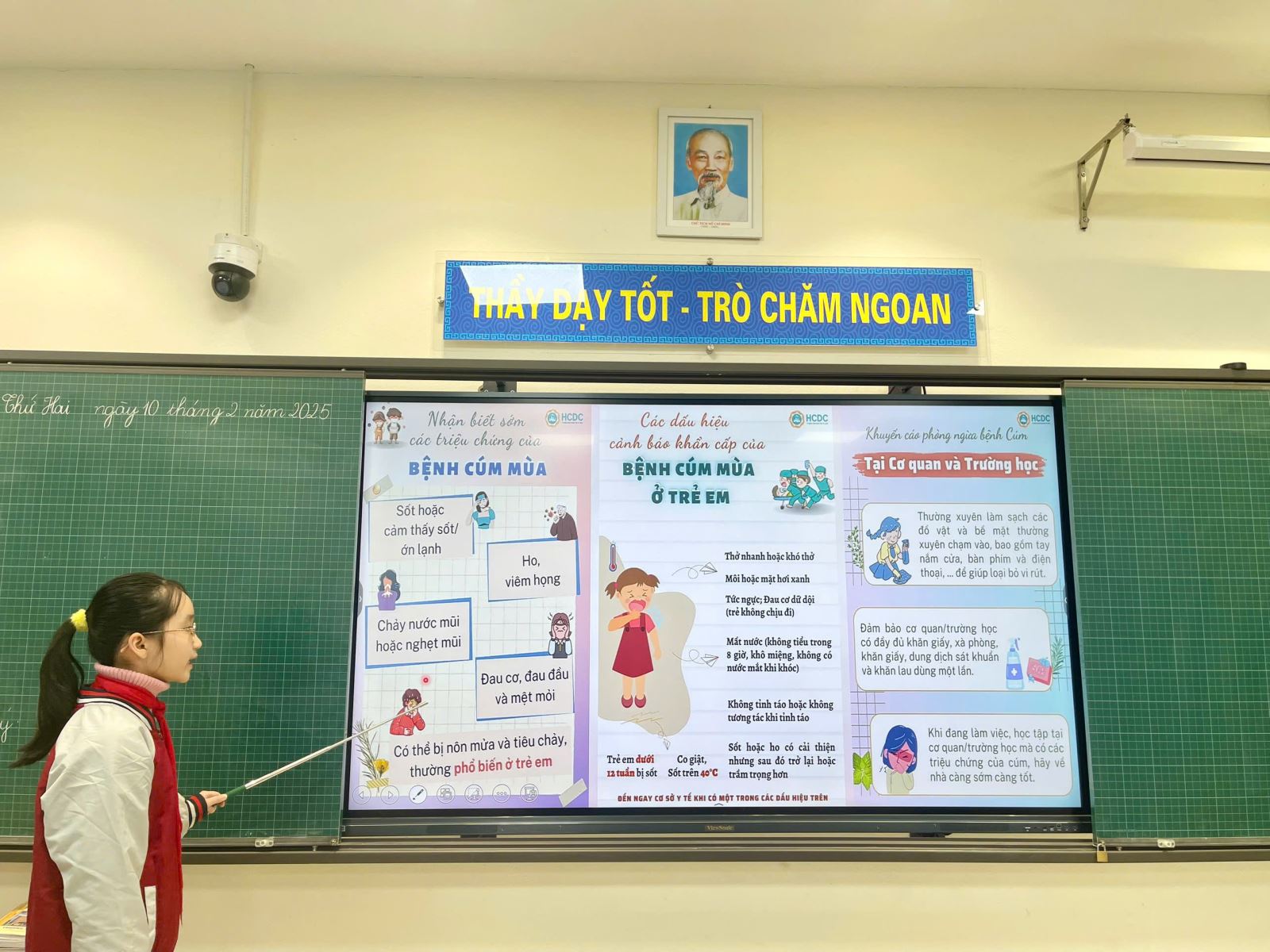 Trong buổi tuyên truyền các em học sinh đã được nghe tuyên truyền về cách nhận biết sớm các triệu chứng của bệnh cúm mùa; các dấu hiệu cảnh báo khẩn cấp ở bệnh cúm mùa ở trẻ em, người trưởng thành; biện pháp phòng bệnh cúm mùa; một số khuyến cáo phòng ngừa bệnh cúm tại cơ quan, trường học… Ngoài ra các em học sinh còn được giao lưu trả lời câu hỏi giúp các em củng cố lại các thông tin.