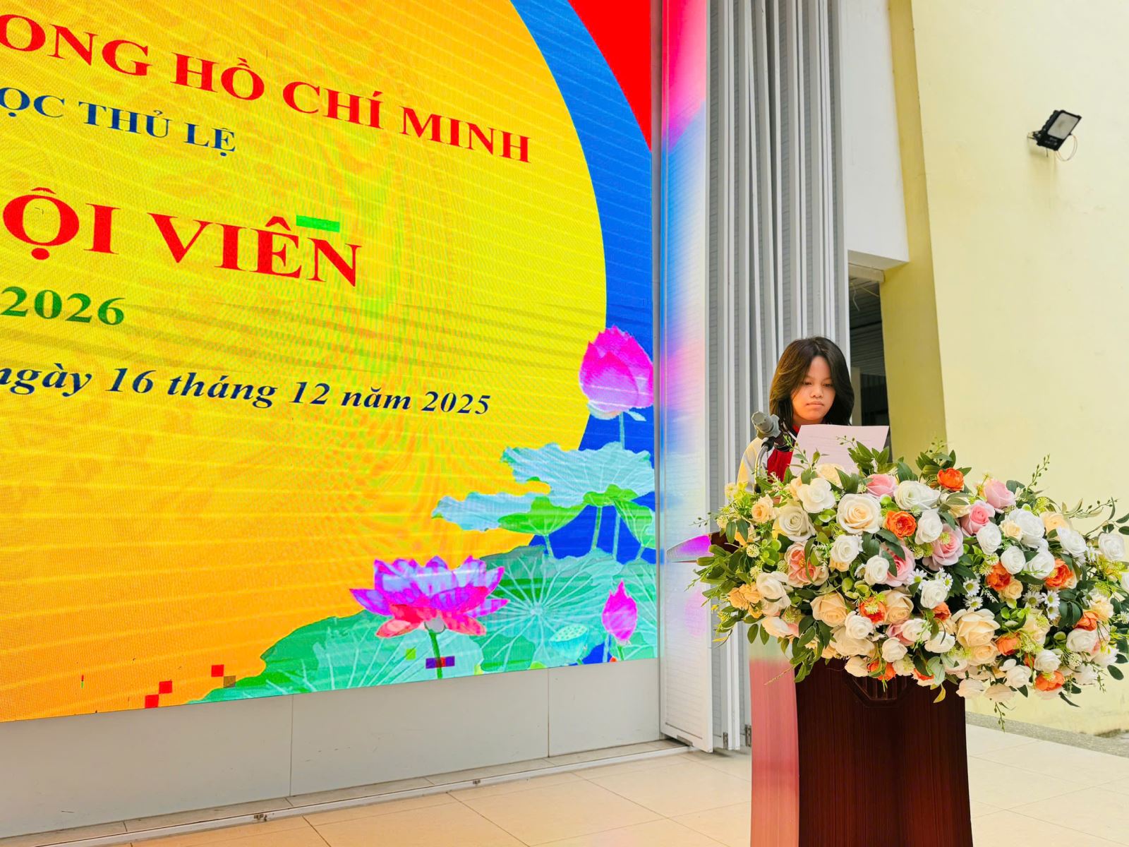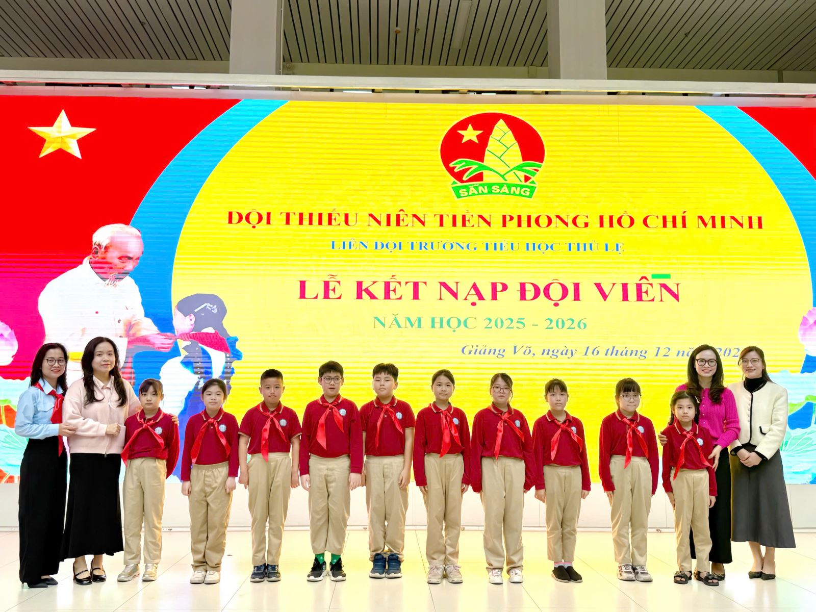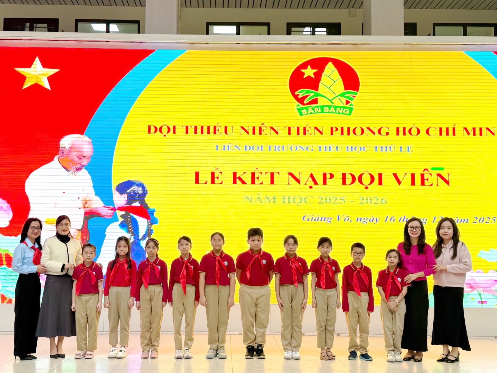 Trước cờ Tổ quốc, cờ Đội và chân dung Chủ tịch Hồ Chí Minh kính yêu, các em đội viên mới đã đọc vang lời hứa Đội viên với niềm tự hào, xúc động và quyết tâm rèn luyện, trưởng thành dưới mái trường Tiểu học Thủ Lệ.