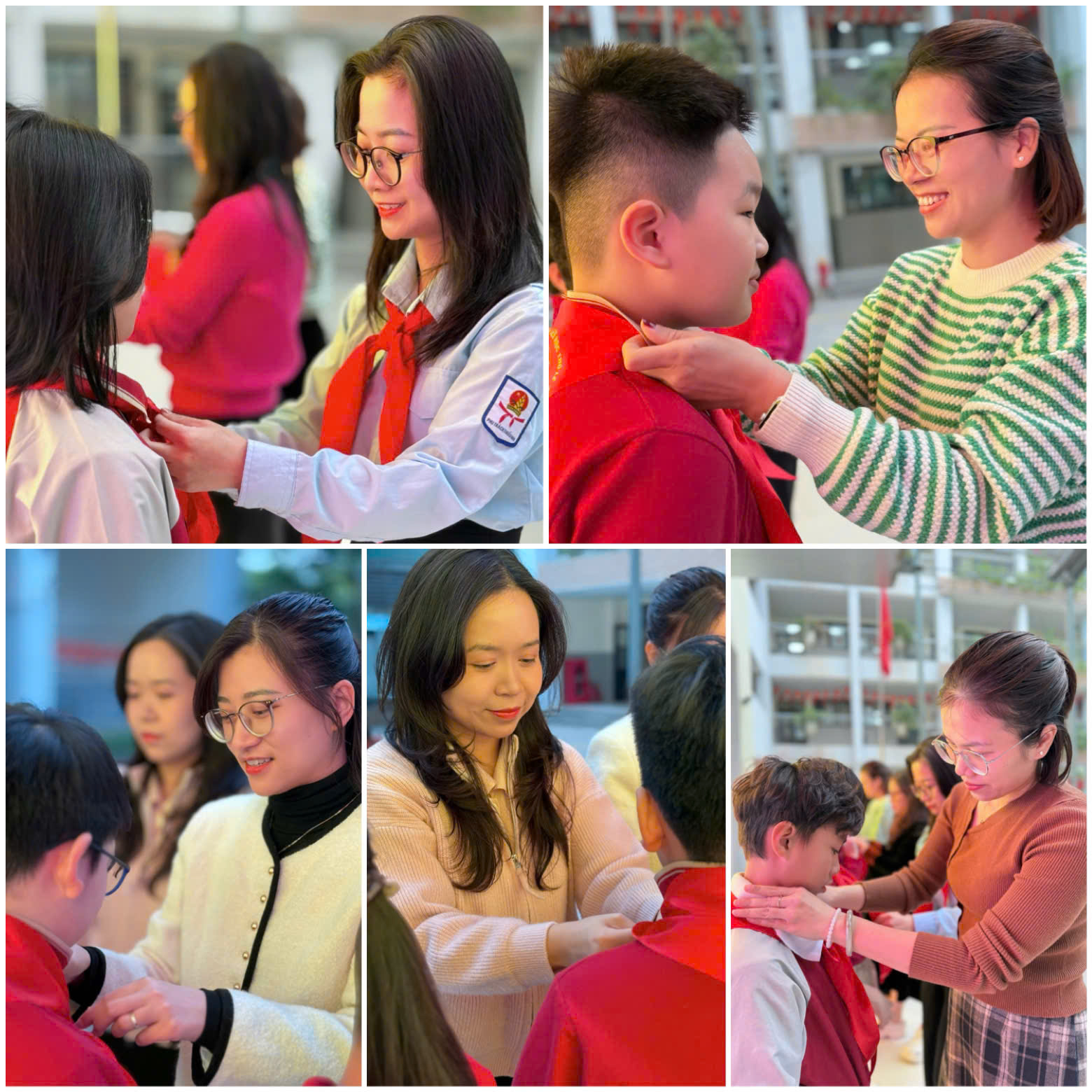 Giây phút các cô giáo trong Ban giám hiệu, cô giáo Tổng phụ trách Đội và các cô giáo phụ trách Chi đội, lớp Nhi đồng đặt chiếc khăn quàng đỏ lên vai các em sẽ là kỷ niệm đáng nhớ của các em dưới mái trường Tiểu học Thủ Lệ.